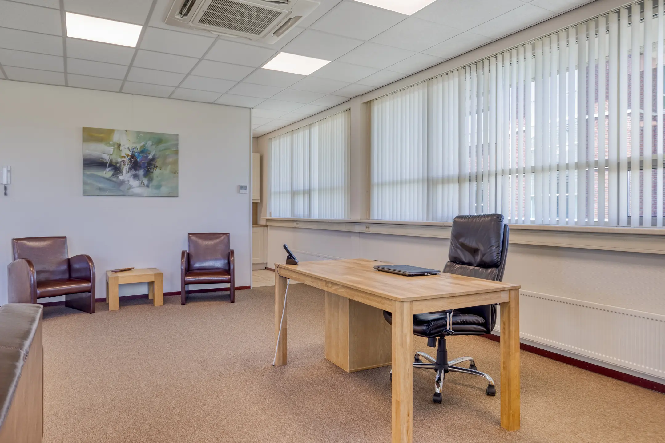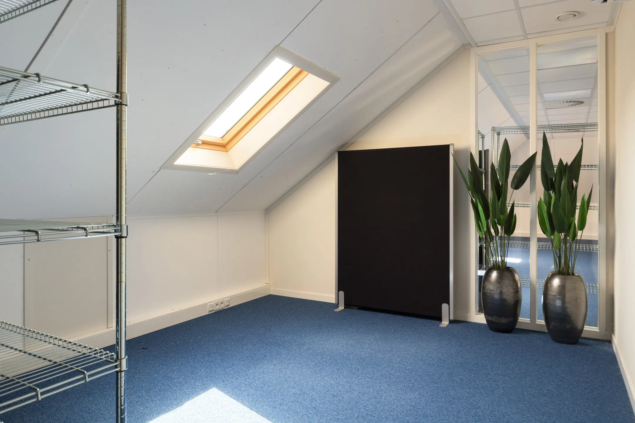 De kantoorruimte 2 is voorzien van vloerbedekking, een dakraam en airconditioning systeem met verwarmingsfunctie.