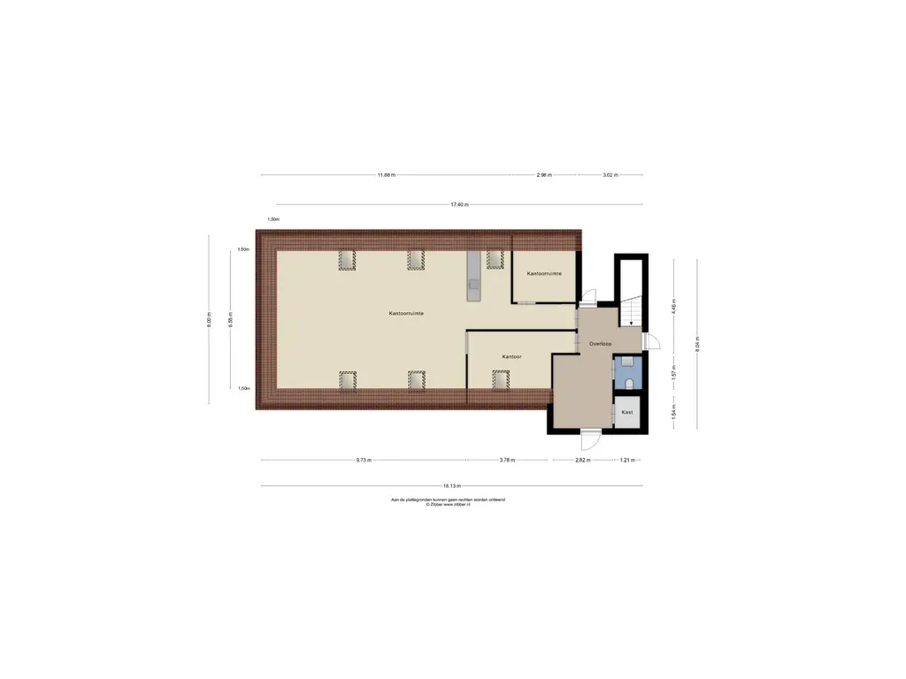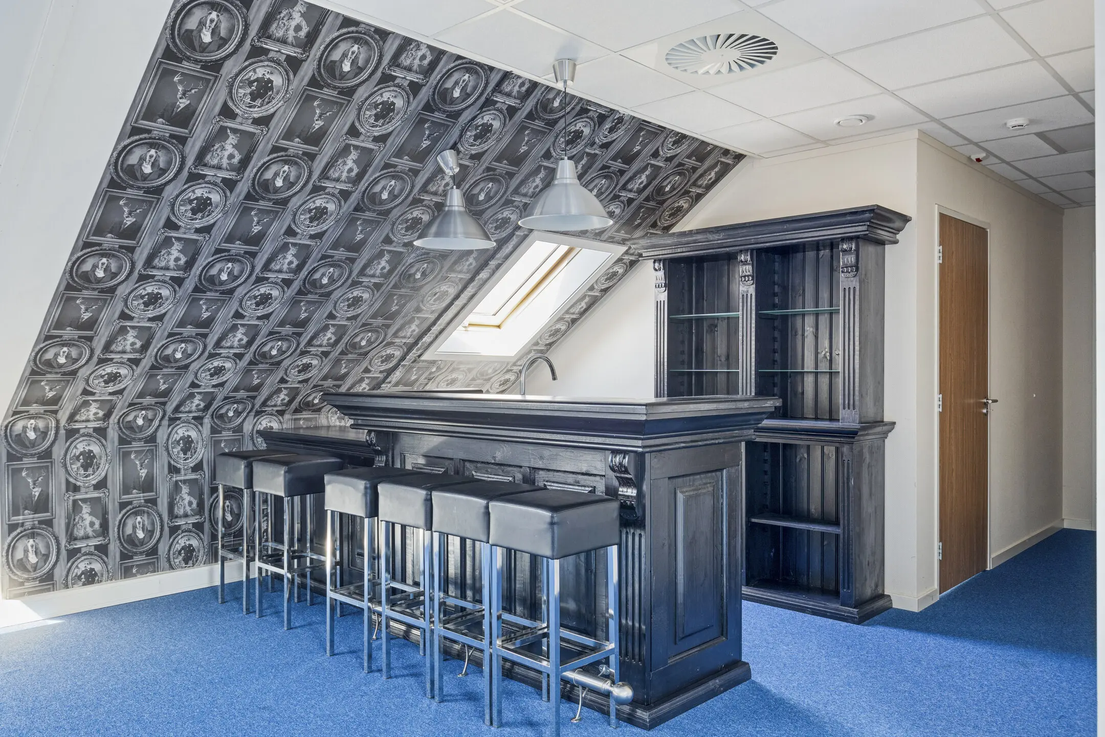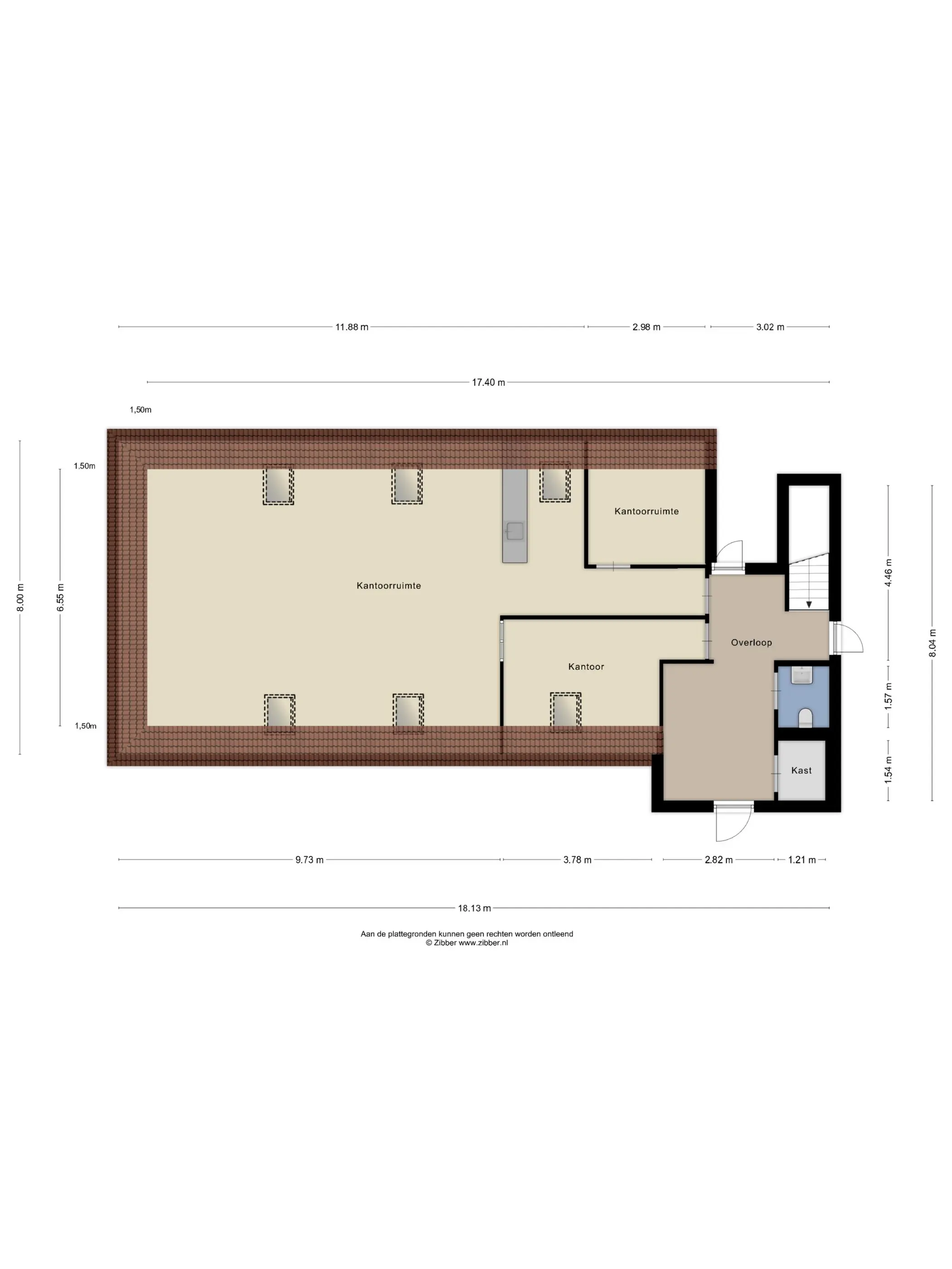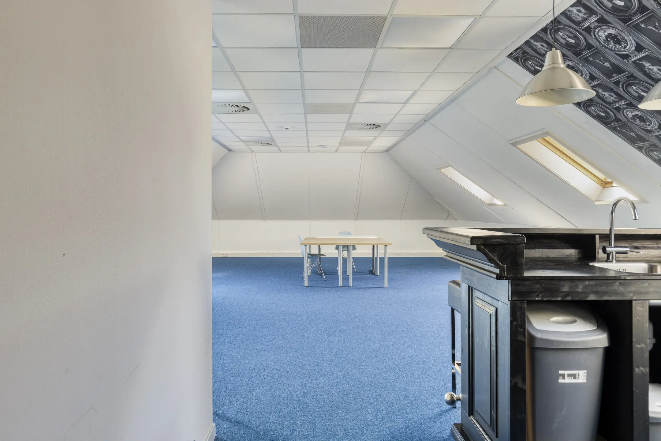 Ruime kantoorruimte 1 voorzien van vloerbedekking, een pantry met enkele spoelbak en vaatwasmachine, en airconditioning systeem met verwarmingsfunctie. Deze kantoorruimte beschikt verder over 5 dakramen.