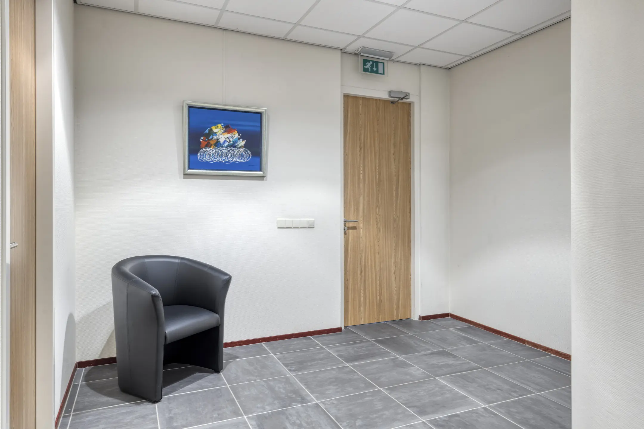 Kantoorruimte 2 is bereikbaar via de overloop en via de kantoorruimte 1. De kantoorruimte is voorzien van vloerbedekking.