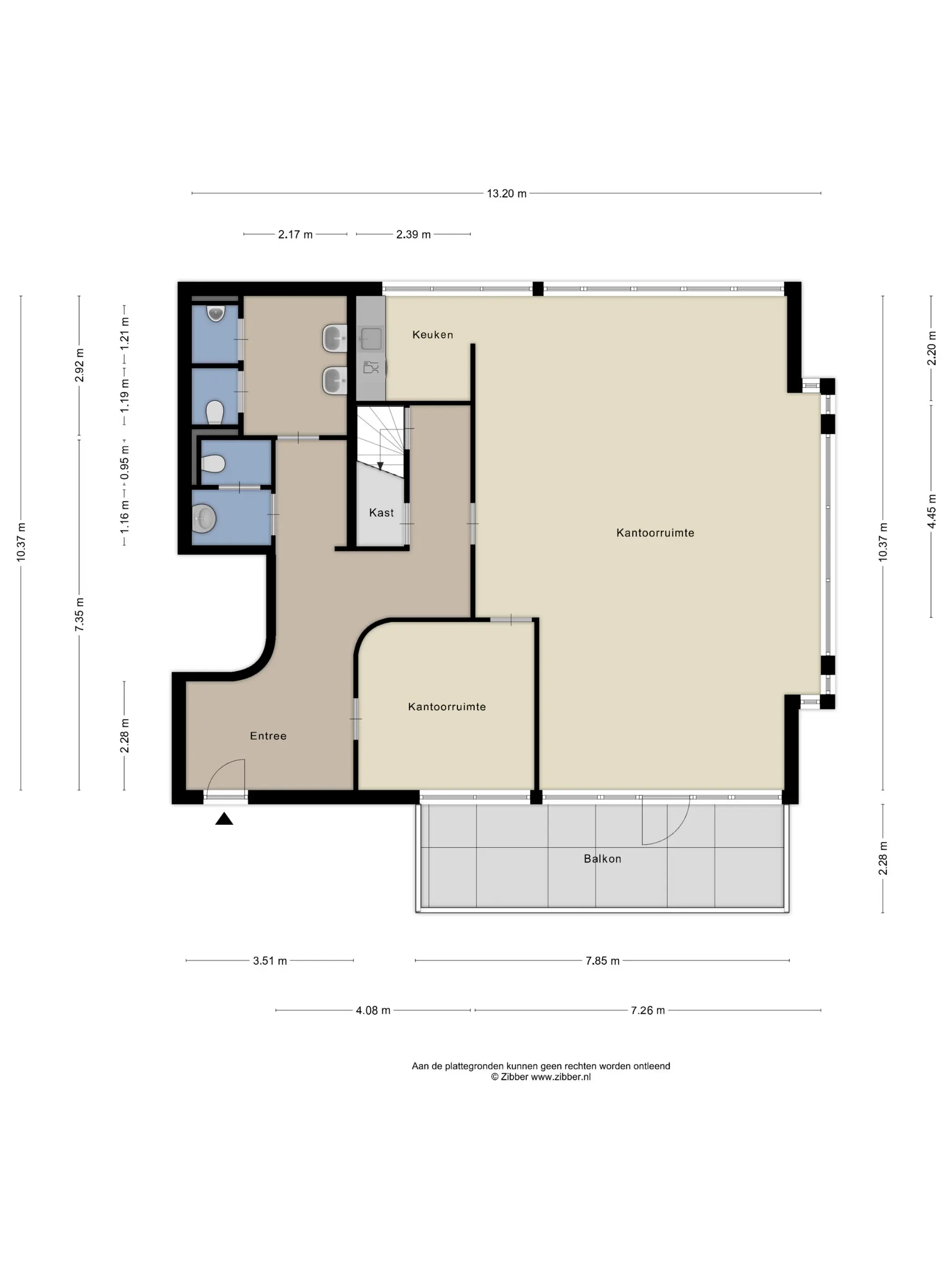 Via de overloop heeft u toegang tot drie ruimtes.