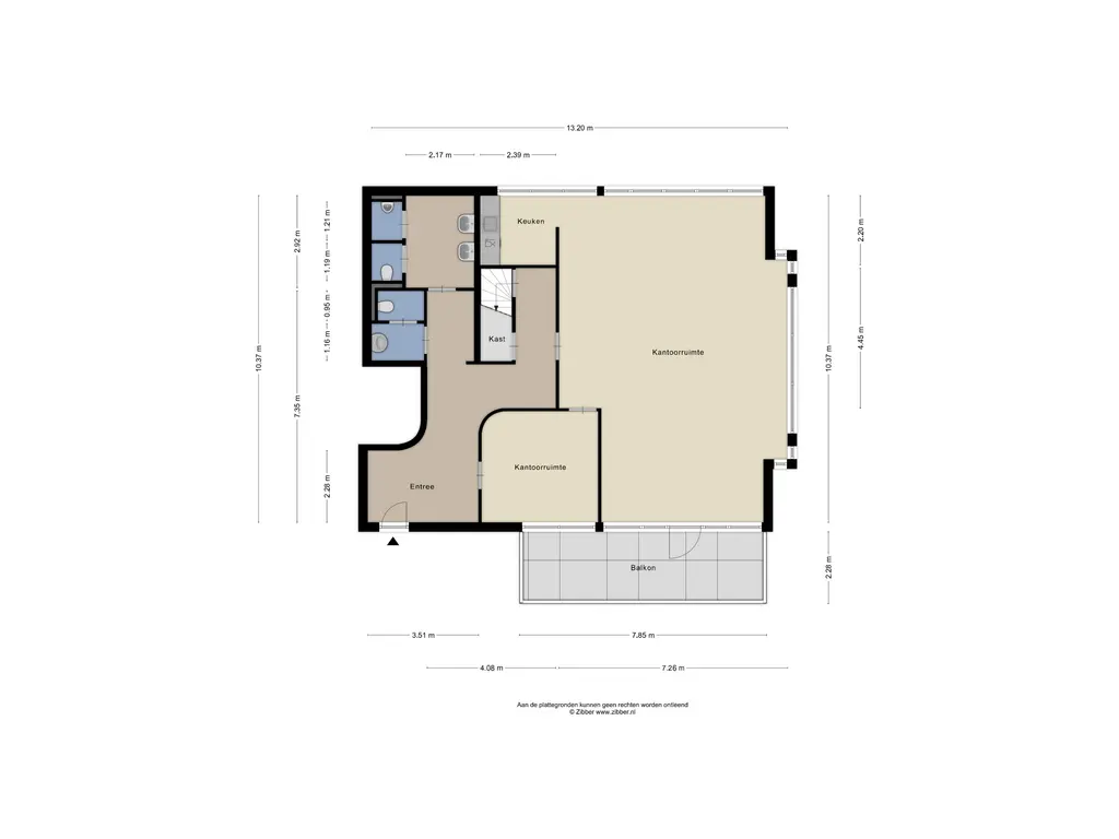 Kantoorruimte 1 voorzien van vloerbedekking, airconditioning systeem met verwarmingsfunctie. Deze kantoorruimte beschikt verder over een aparte ruimte met een pantry met koelkast, vaatwasmachine en een enkele spoelbak. Via de kantoorruimte heeft u toegang tot het balkon.
