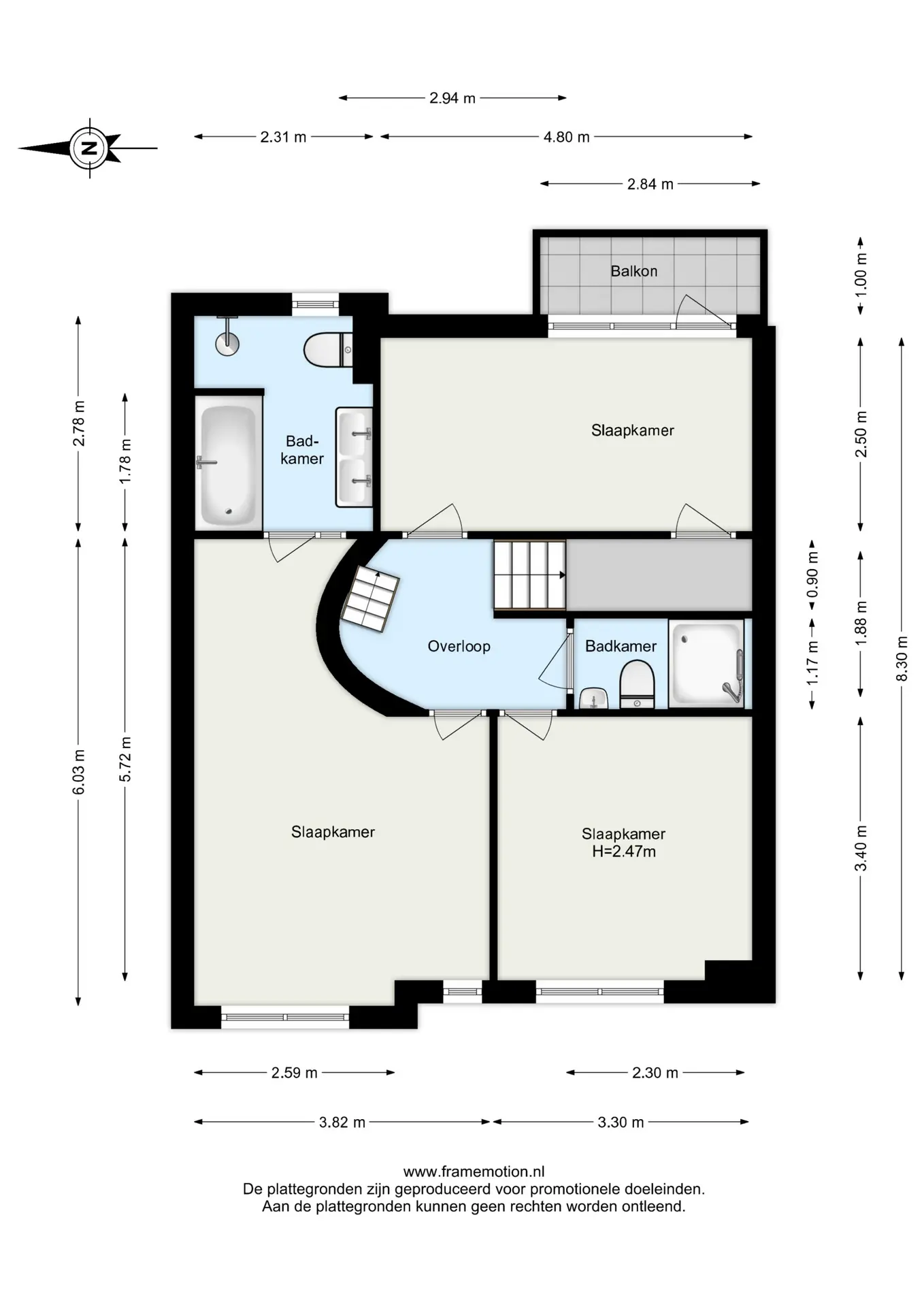 De overloop biedt toegang tot drie slaapkamers en de tweede badkamer.