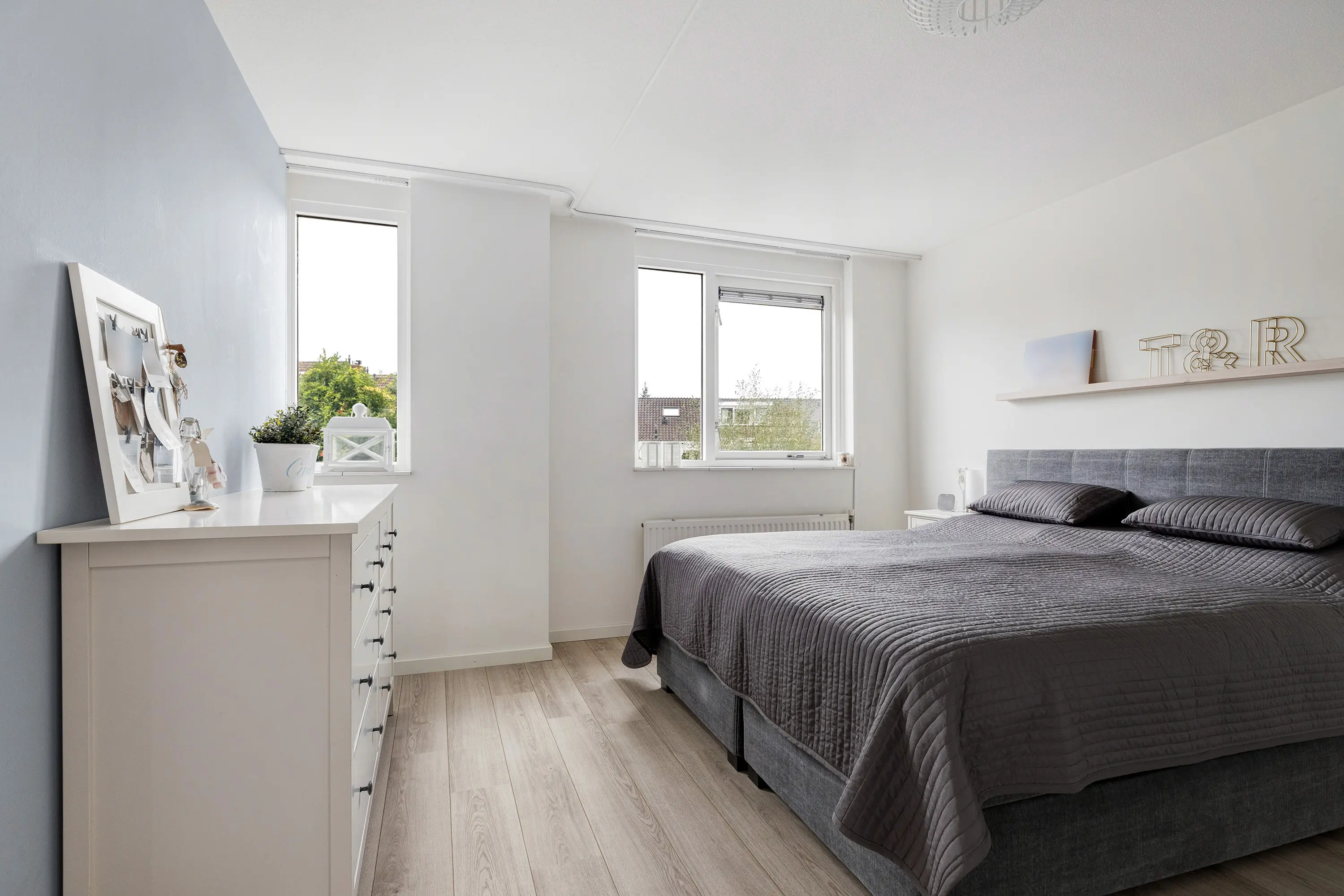 Zowel slaapkamer 1 als 2 beschikken over een antraciet kleurige elektrische rolluik.