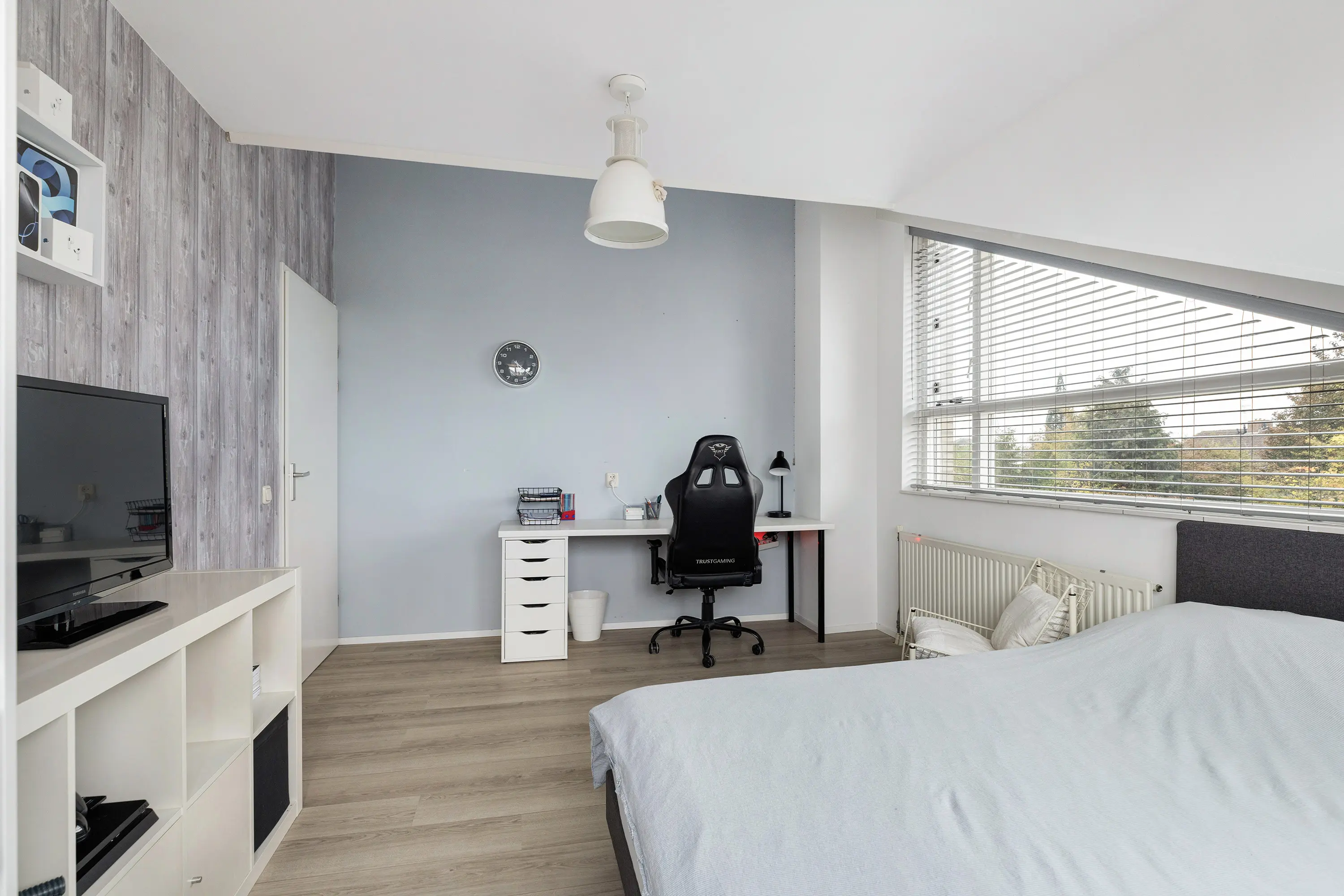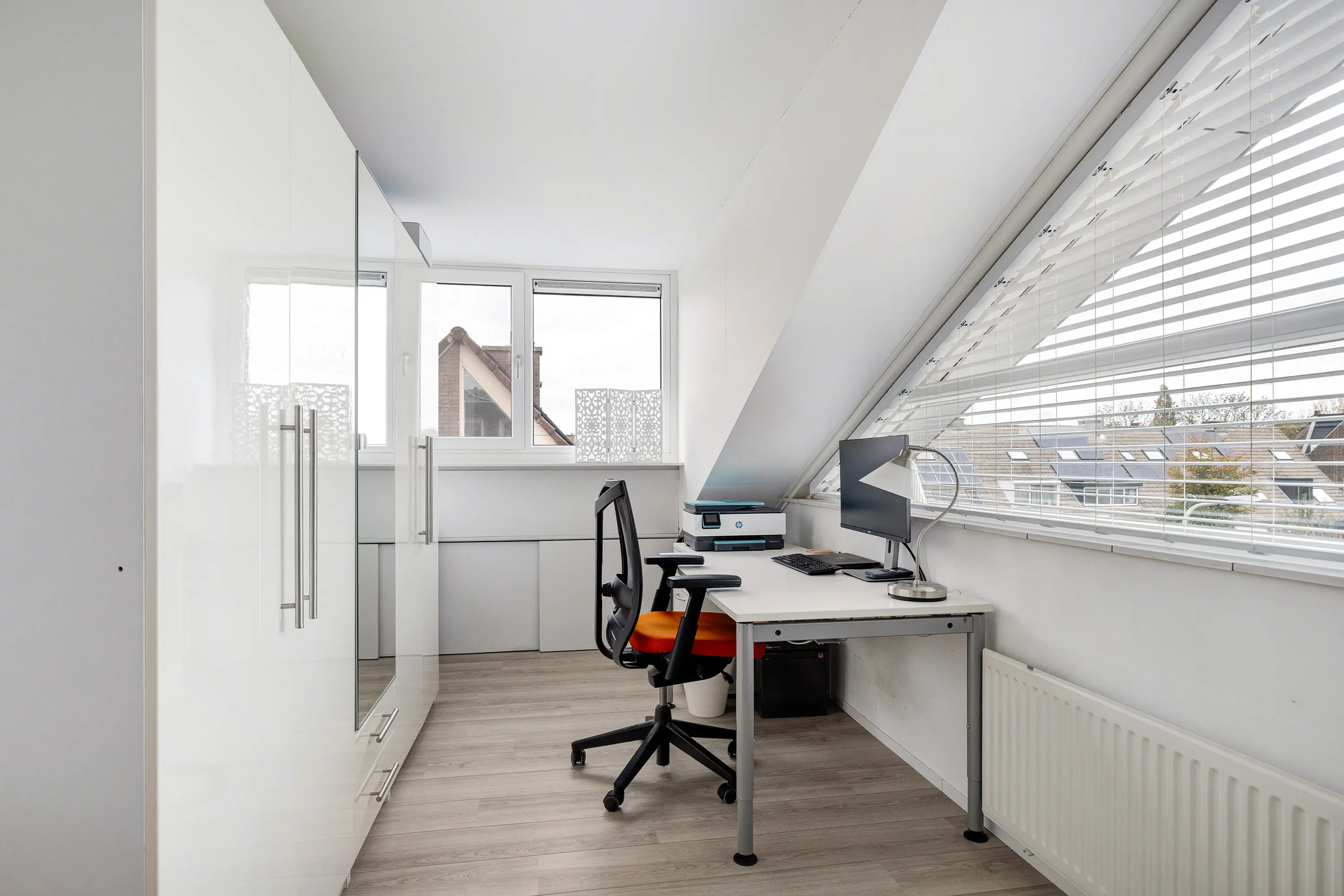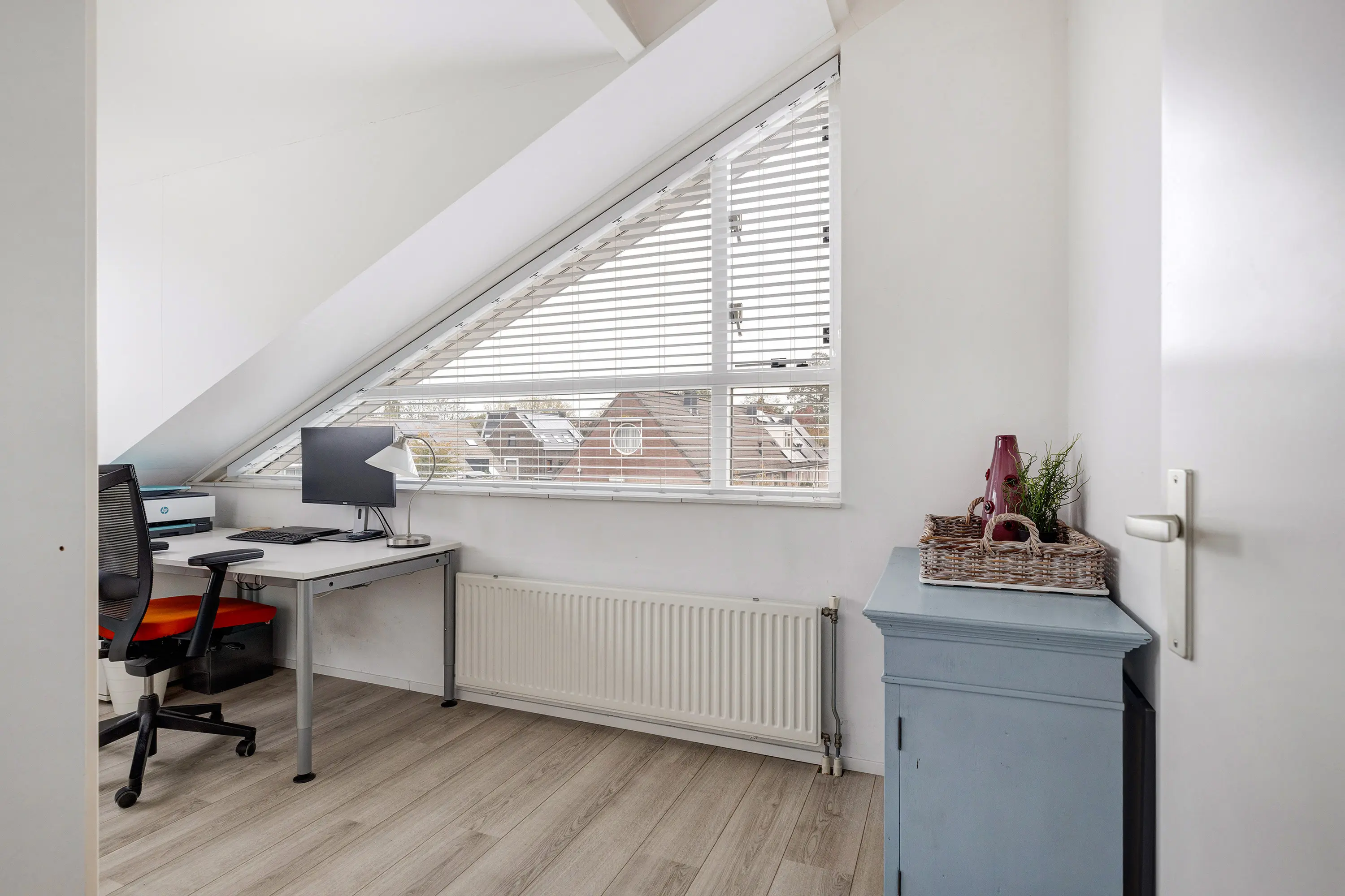 Slaapkamer 4 ligt aan de voorzijde, is nu ingericht als werkkamer maar biedt voldoende ruimte om als slaapkamer te fungeren. Slaapkamer 5 ligt aan de achterzijde.