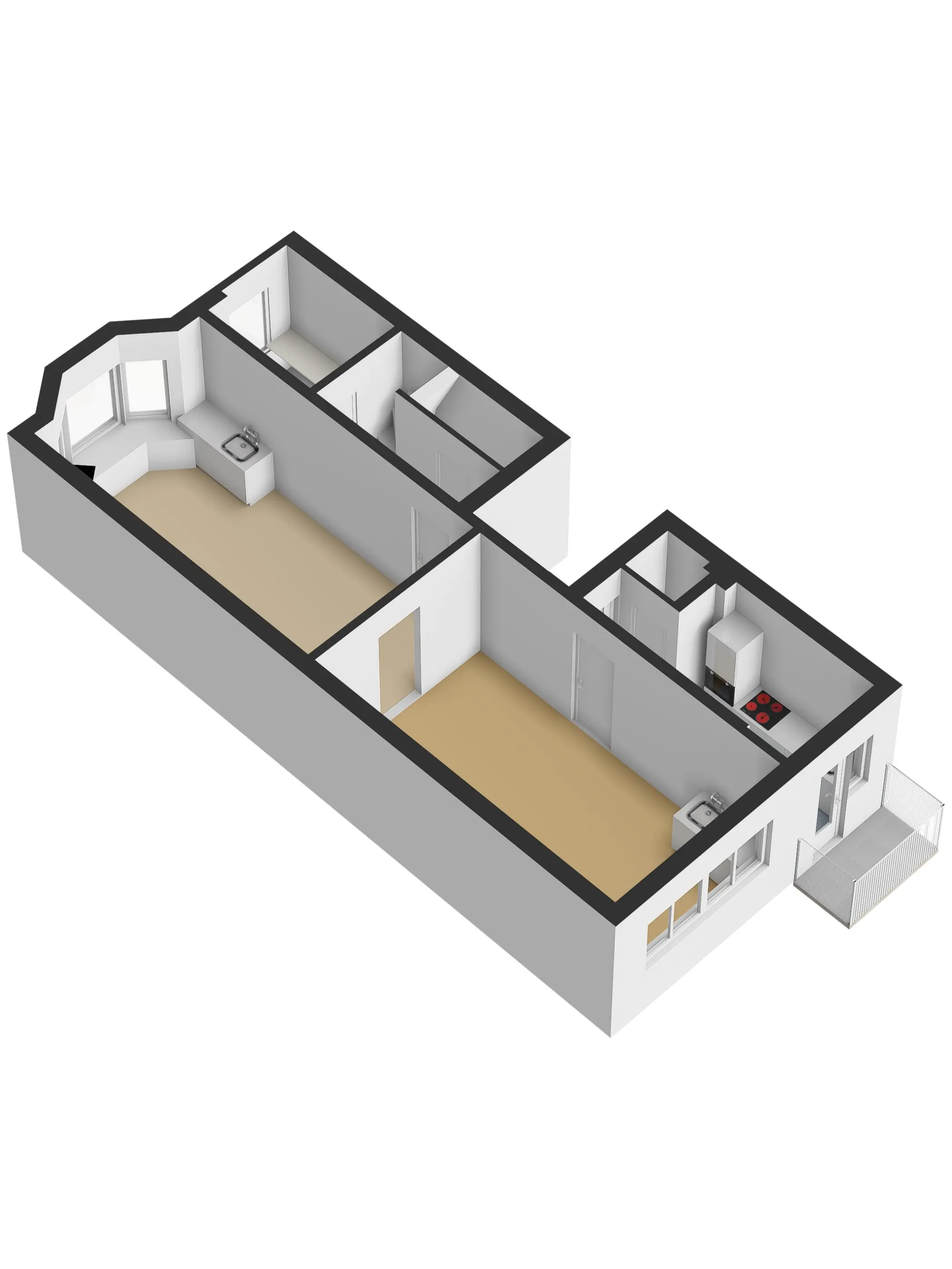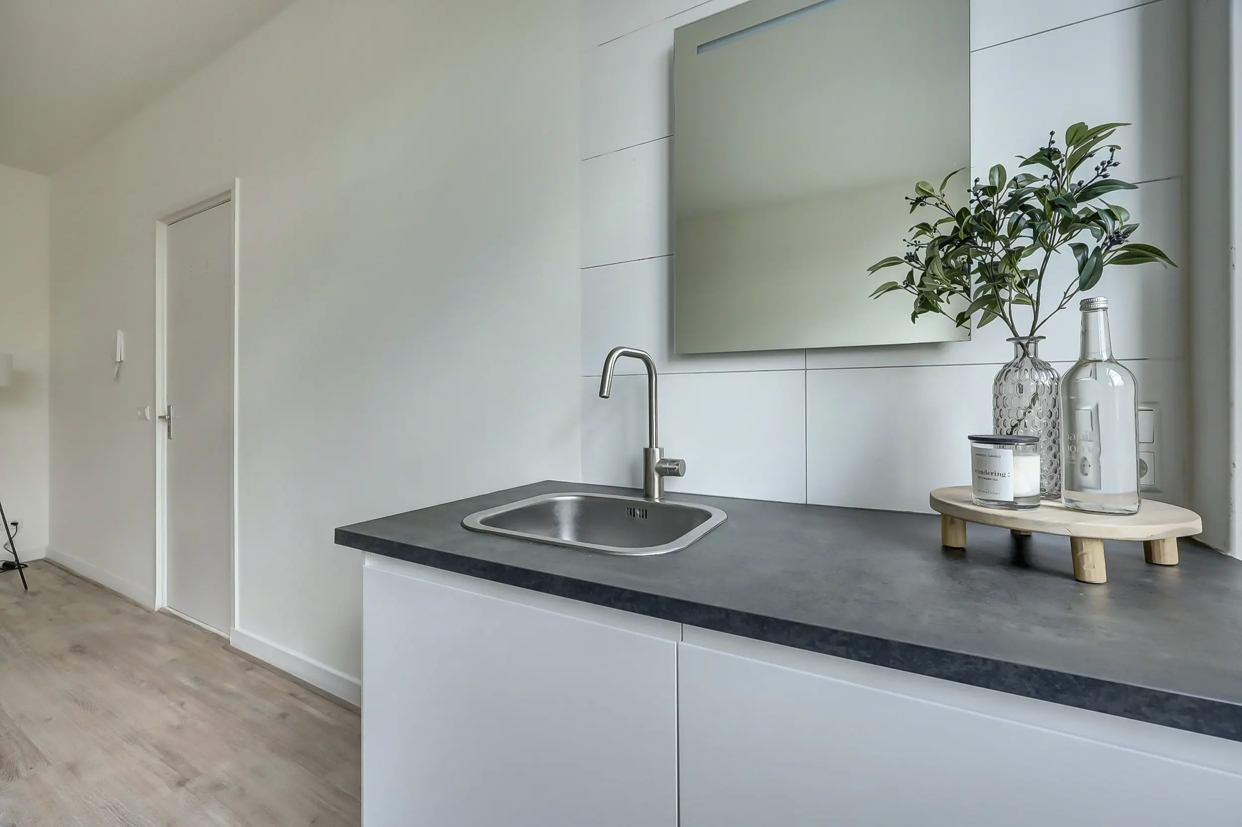 Dit appartement is voorheen verhuurd geweest, waarbij er drie ruime kamers waren met eigen keuken. De keukens zijn blijven zitten; je zou hier dus ook prima met z’n drieën kunnen wonen, waarbij je het toilet en de badkamer deelt, maar elk je eigen keukenblokje hebt en daarnaast een gezamenlijke keuken. Uiteraard zijn de keukenblokjes er ook zo uit, en bewoon je dit huis gewoon in je eentje, met z’n tweeën of met je gezin.