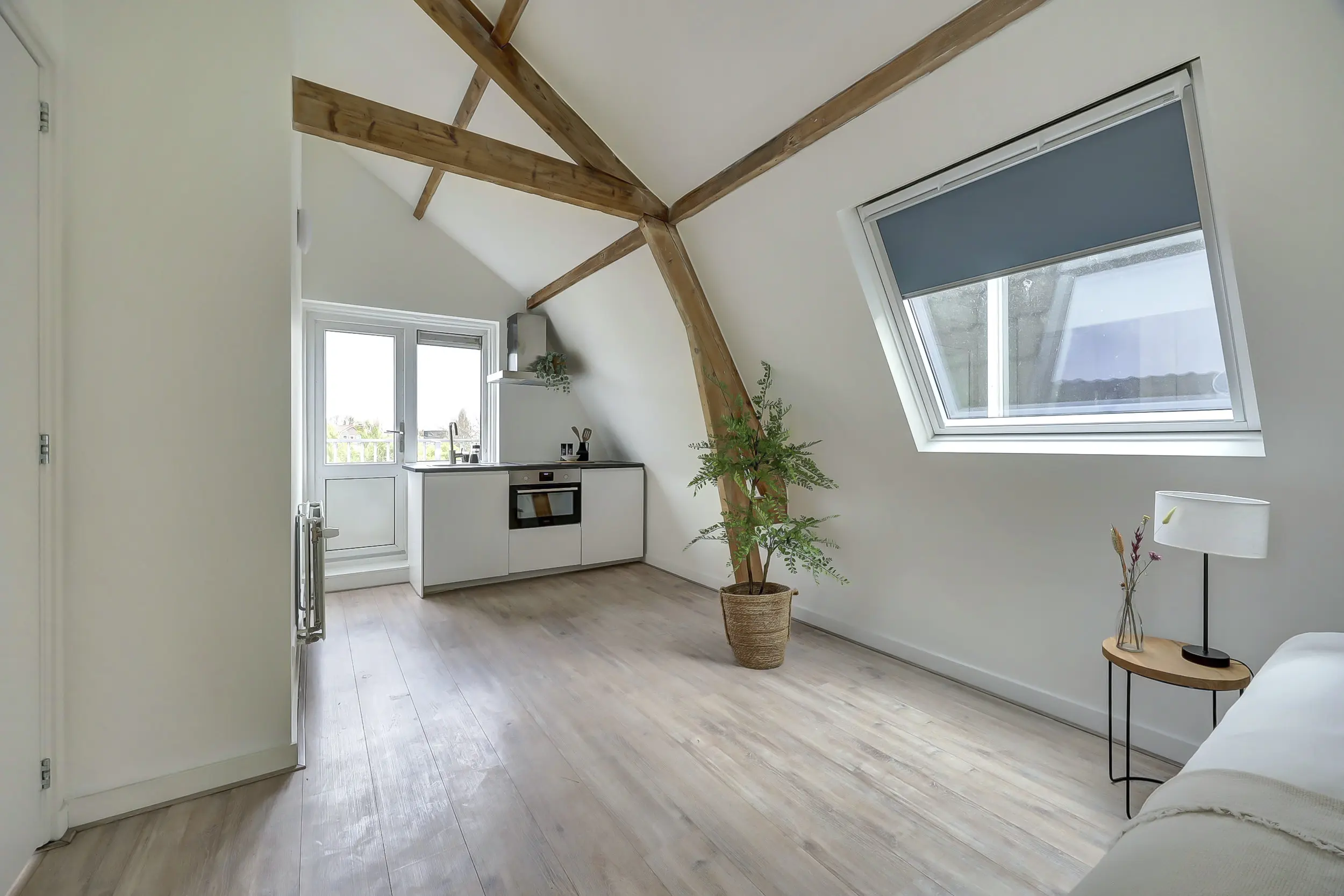 Deze heerlijk lichte en ruime bovenwoning is verdeeld over de tweede en halve vierde etage. Samen met nummer B03 deel je dezelfde voordeur en op de tweede etage heb je de eigen voordeur van jouw woning.