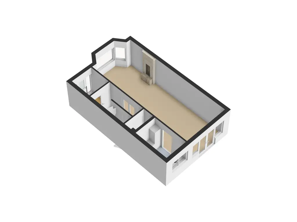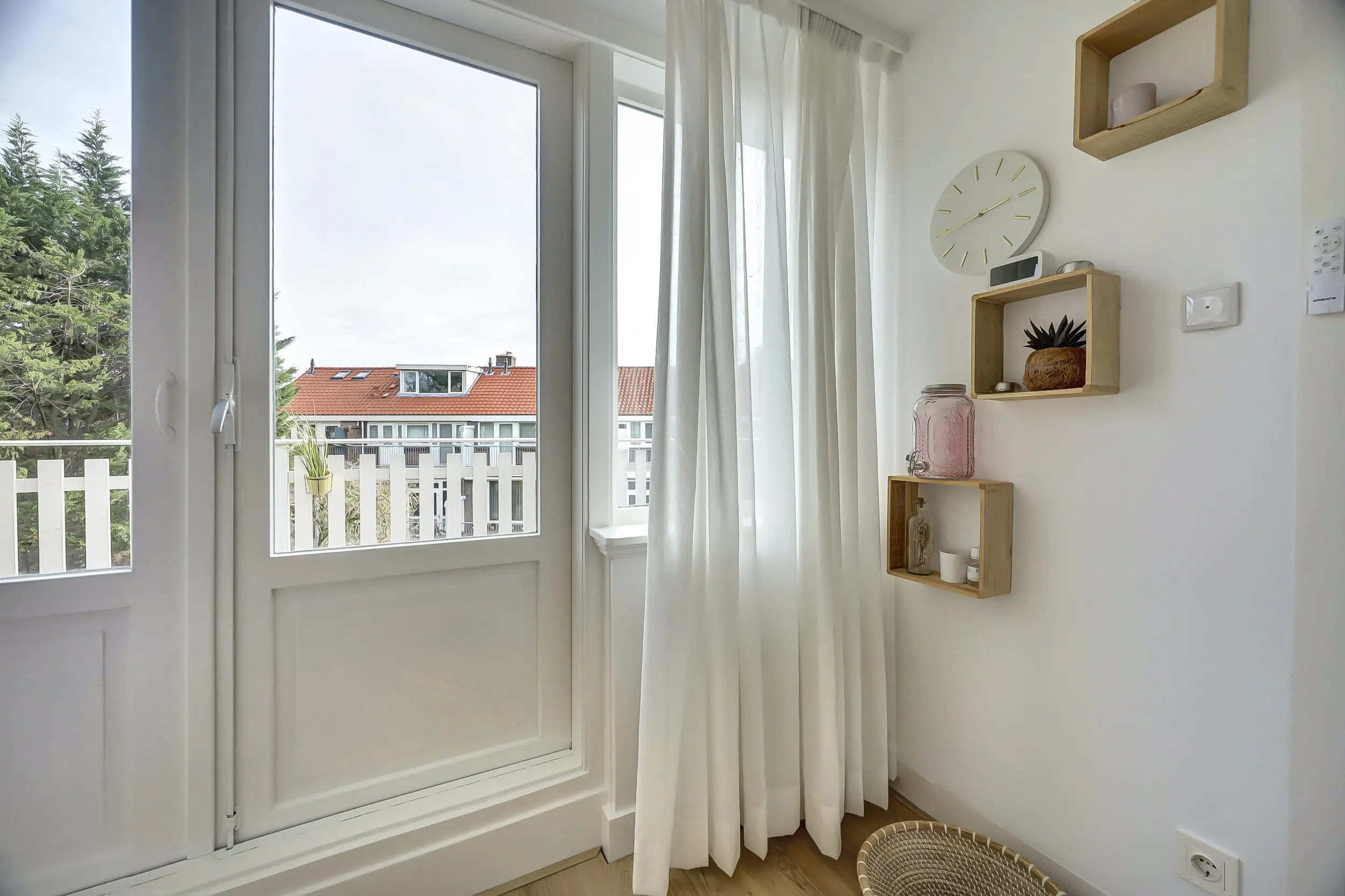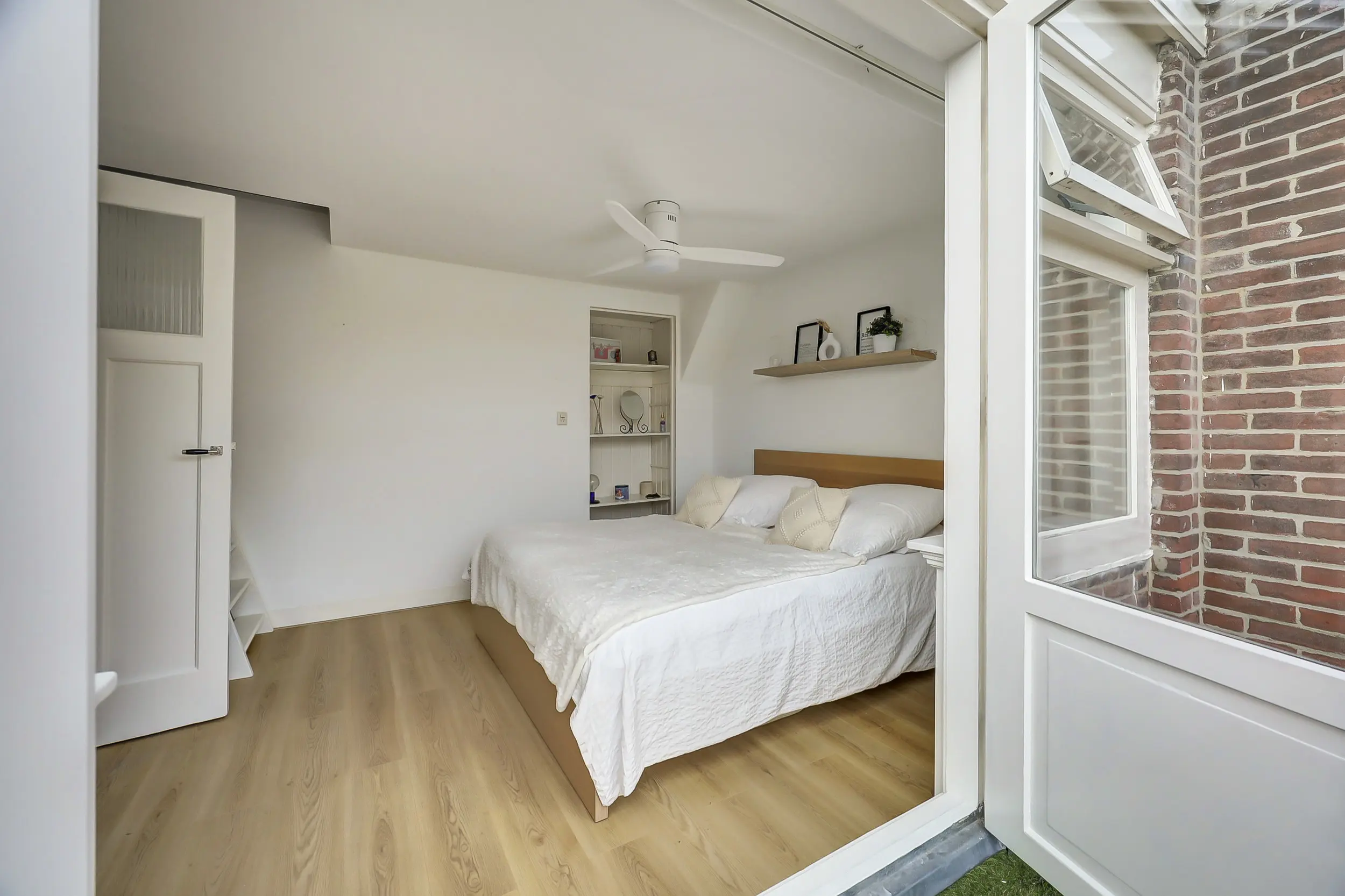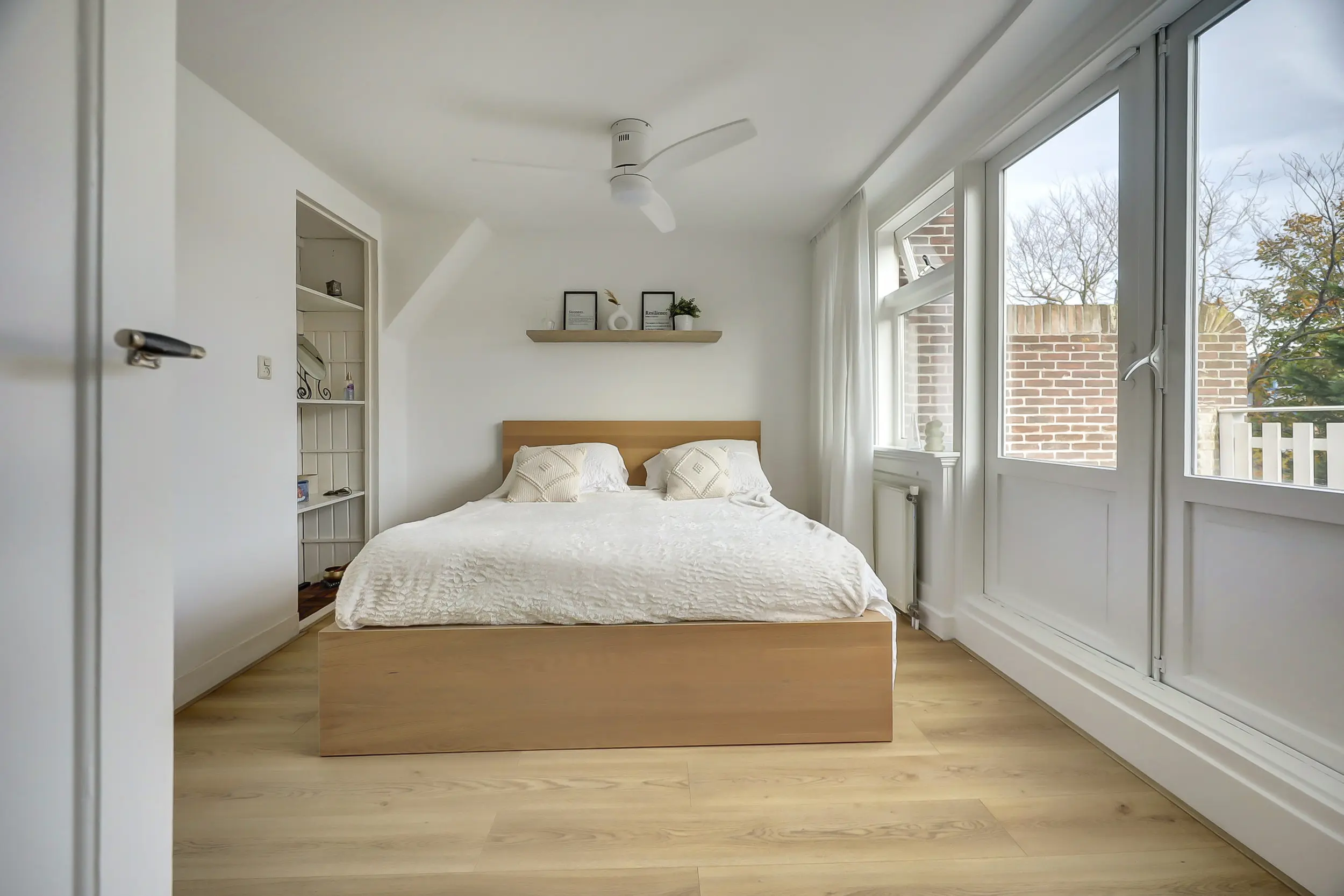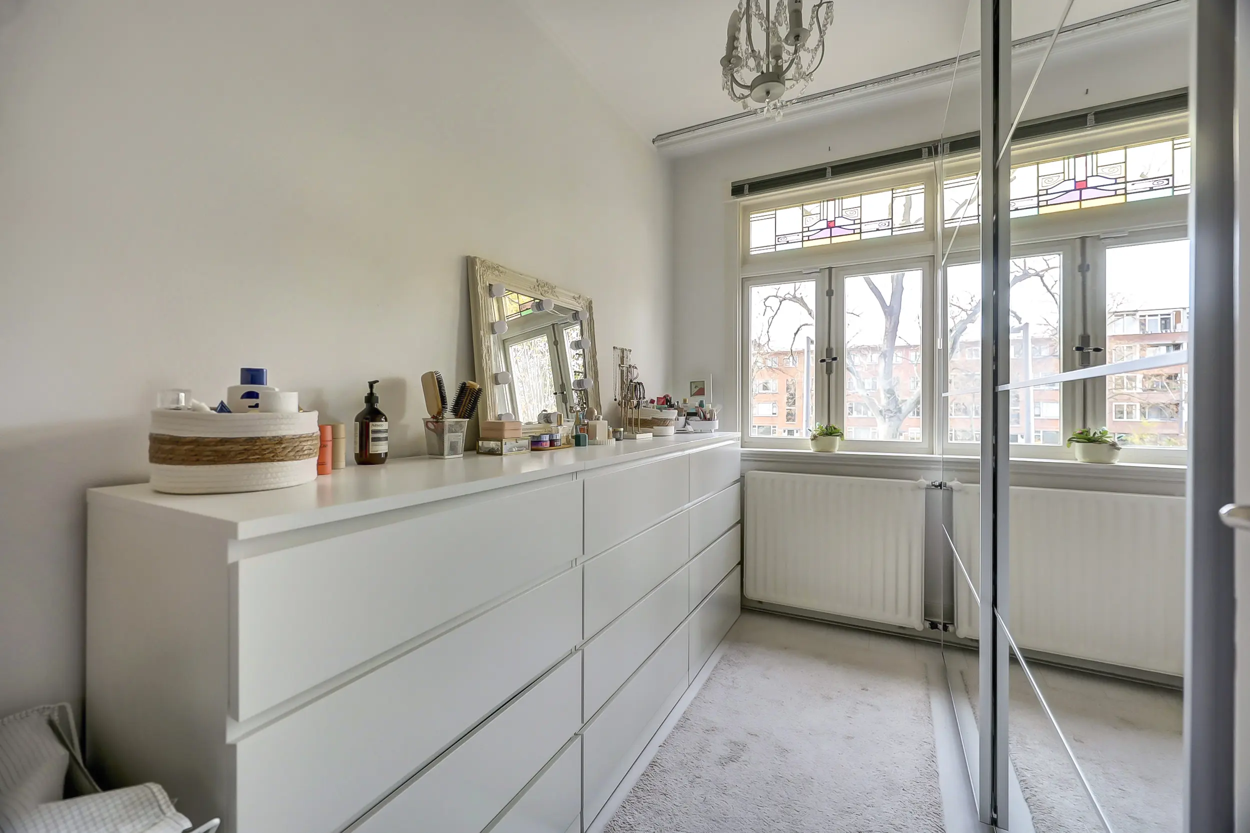 De derde kamer is ca. 6 m² groot en is een fijne werkkamer, babykamer of zoals hij nu in gebruik is, als walk-in-closet. Ook weer met prachtig uitzicht over de Vliet.