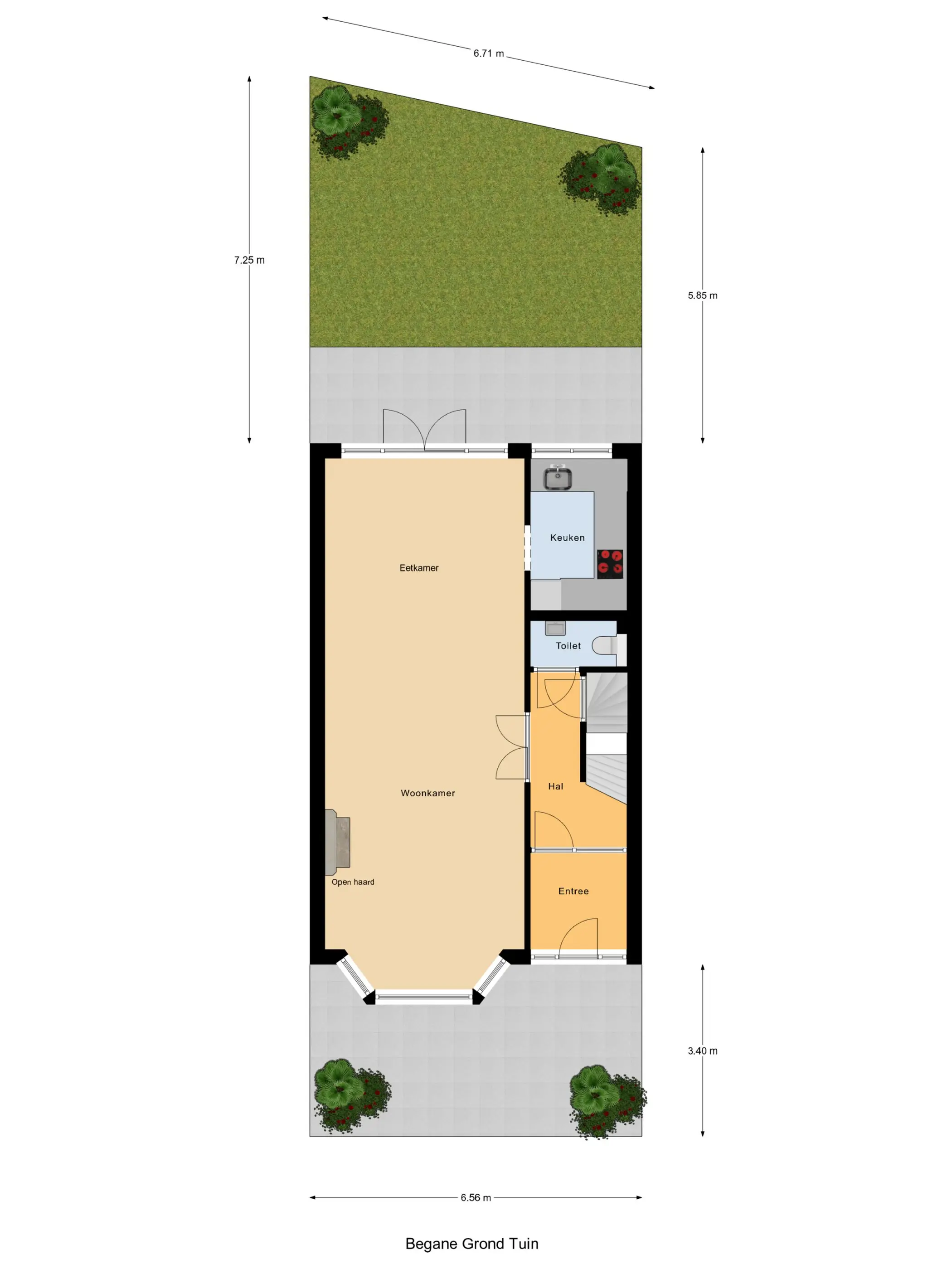 - Fraai aangelegde tuin van ca. 43 m² op het oosten