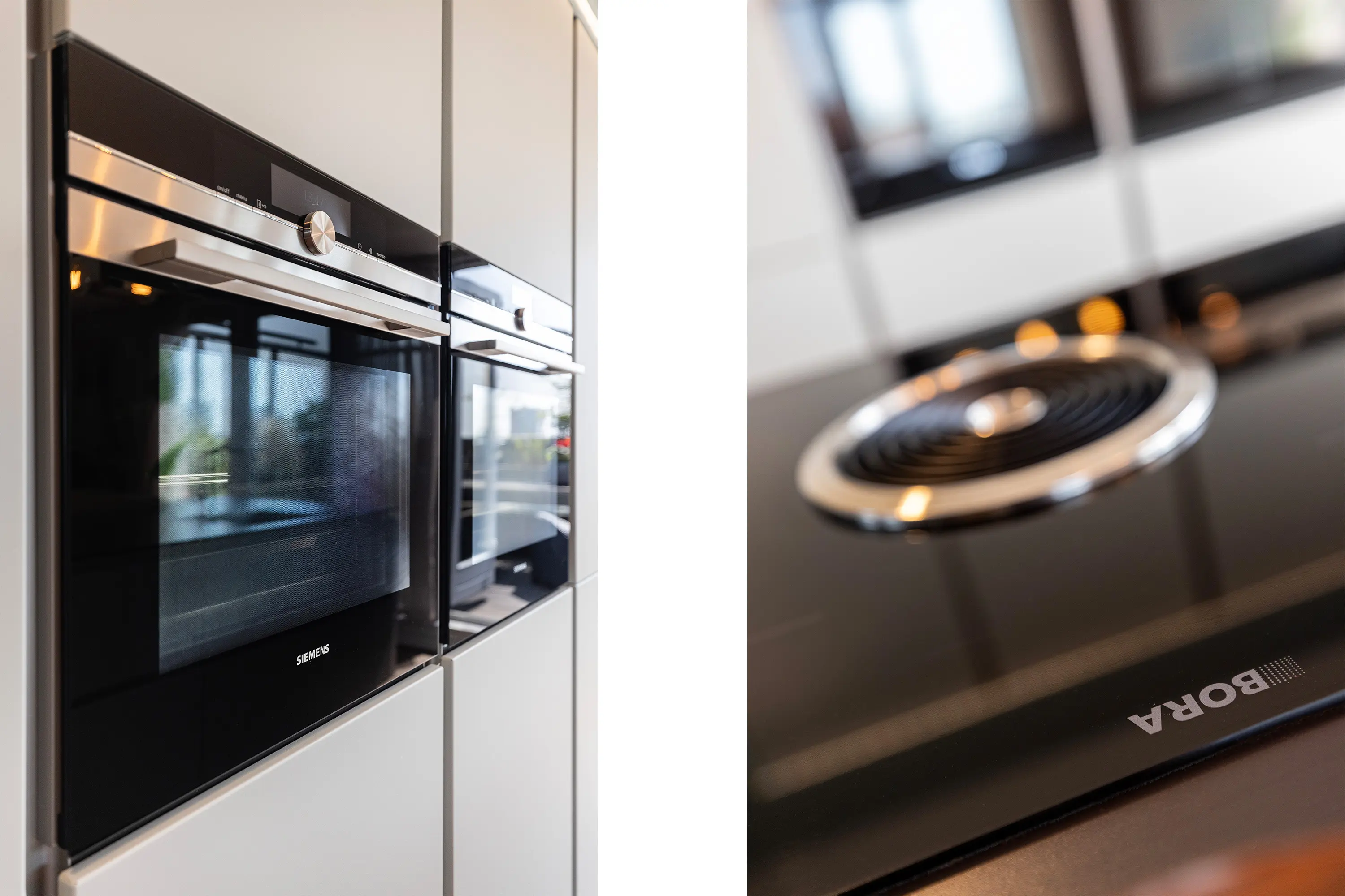 - Compleet uitgeruste open keuken met o.a. een kookeiland, Bora inductiekookplaat en Siemens apparatuur