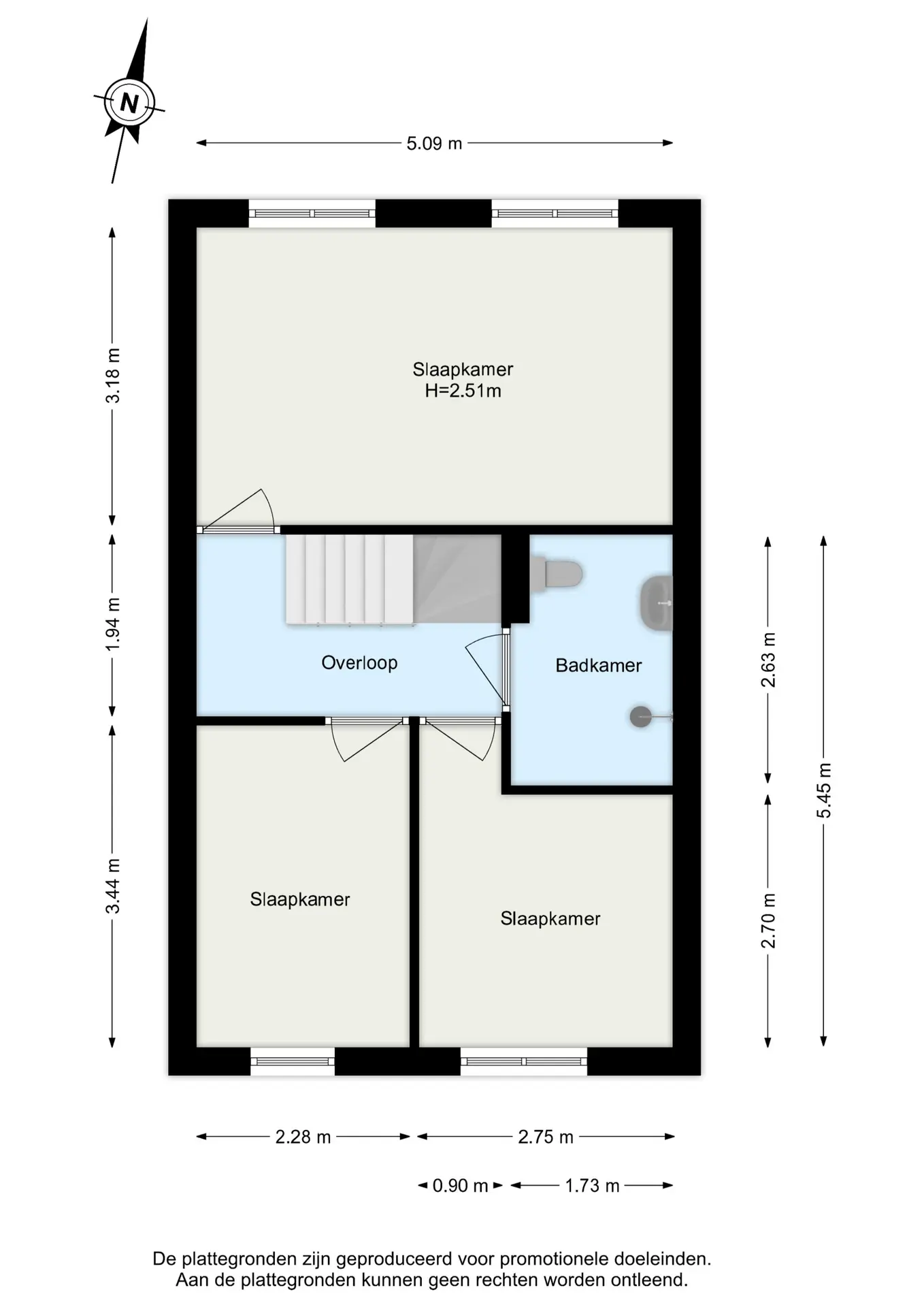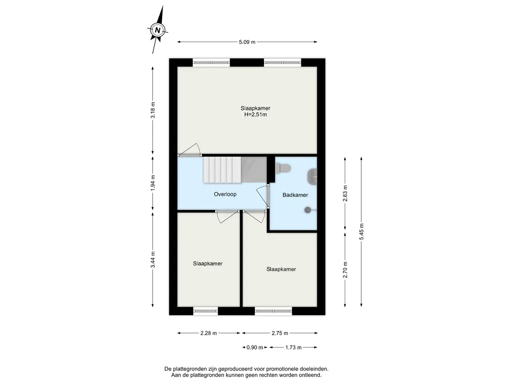 De ruime overloop biedt toegang tot drie comfortabele slaapkamers en de badkamer.