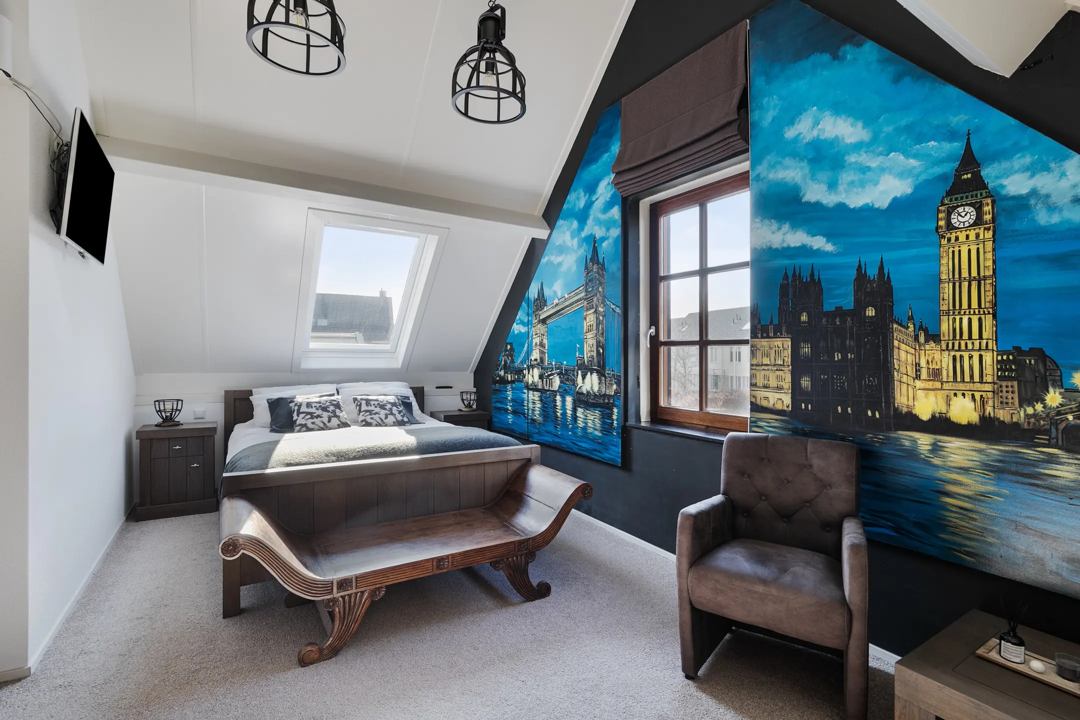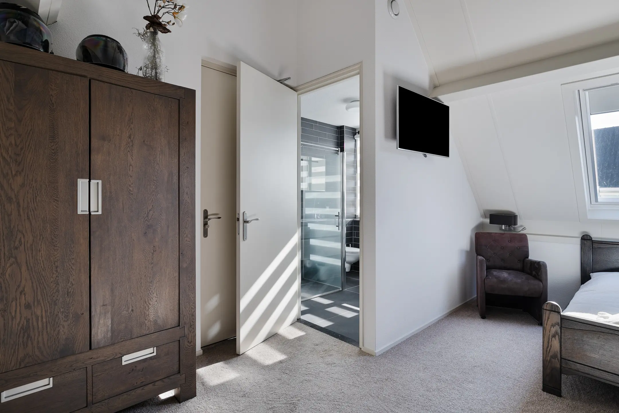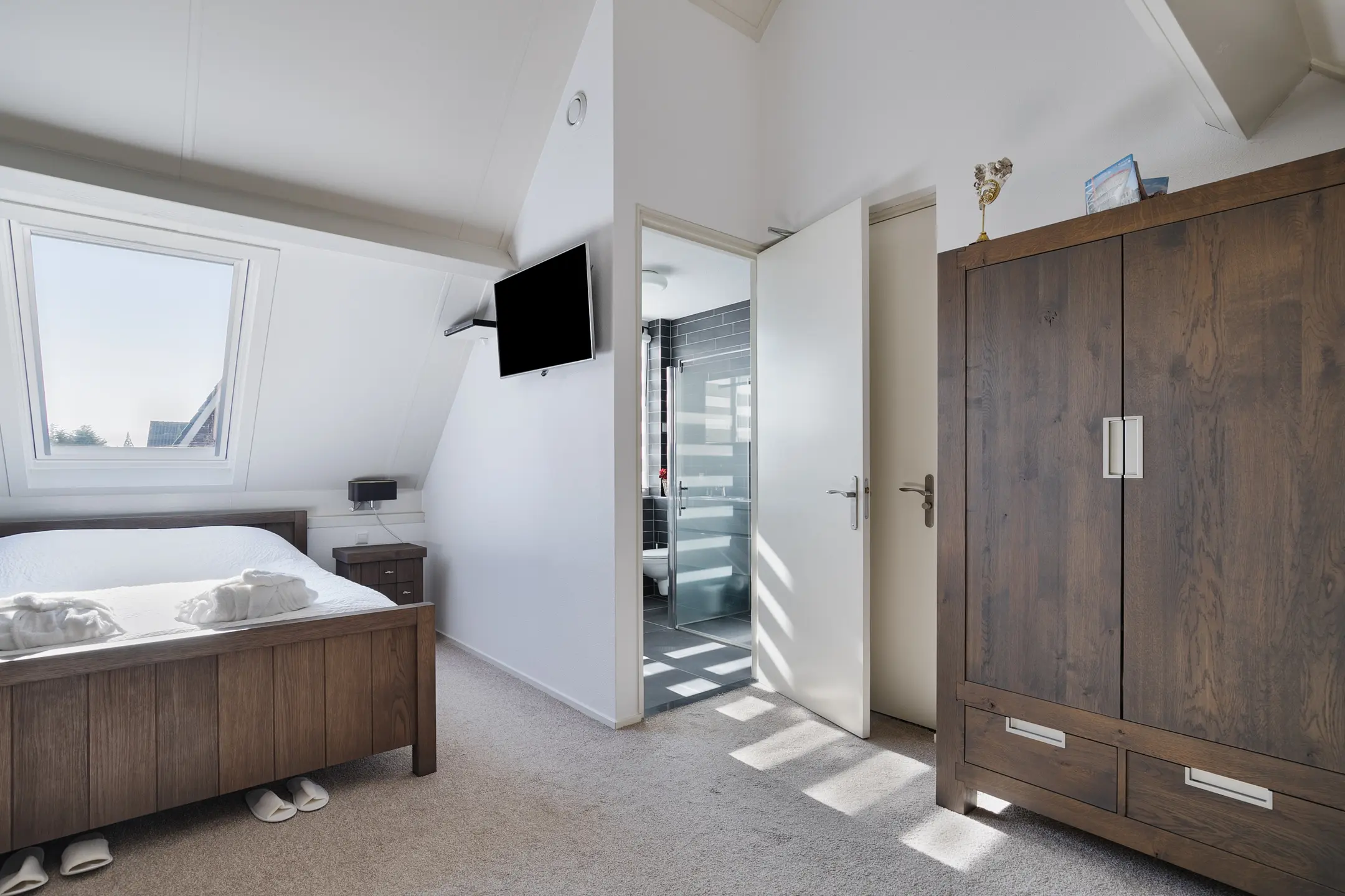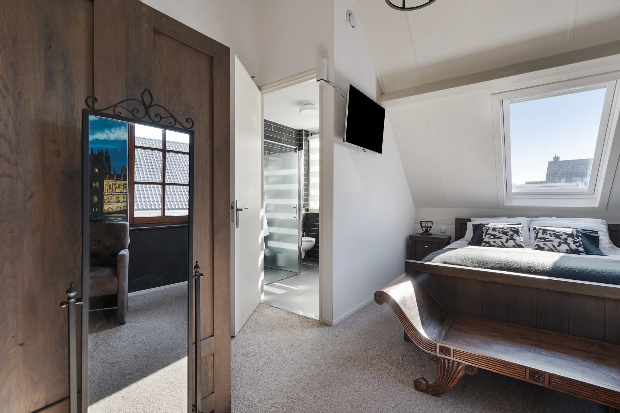 Slaapkamer Rotterdam met een moderne badkamer en suite.