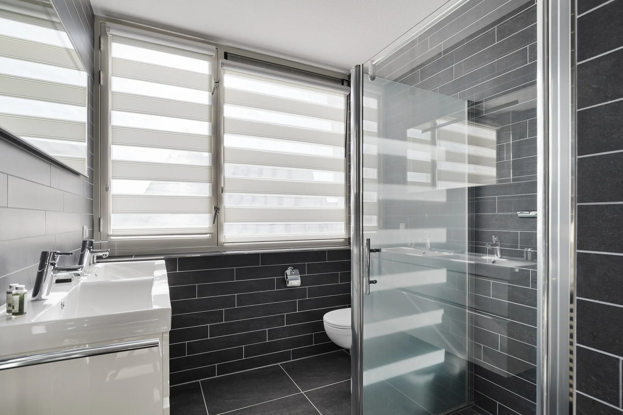 De badkamers aan deze kant van het gebouw zijn voorzien van sanitaire voorzieningen zoals dubbele wastafels met wastafelmeubel, spiegel met verlichting, hangend toilet en inloopdouche. De badkamer is geheel betegeld en voorzien van tegelvloer met vloerverwarming.