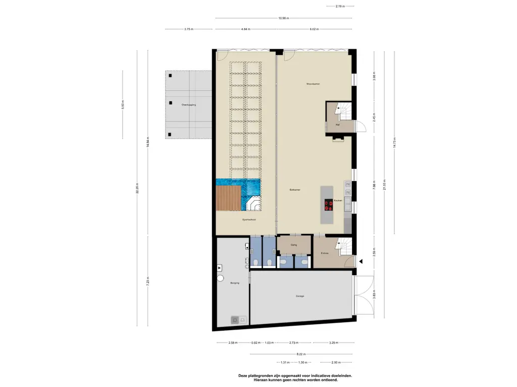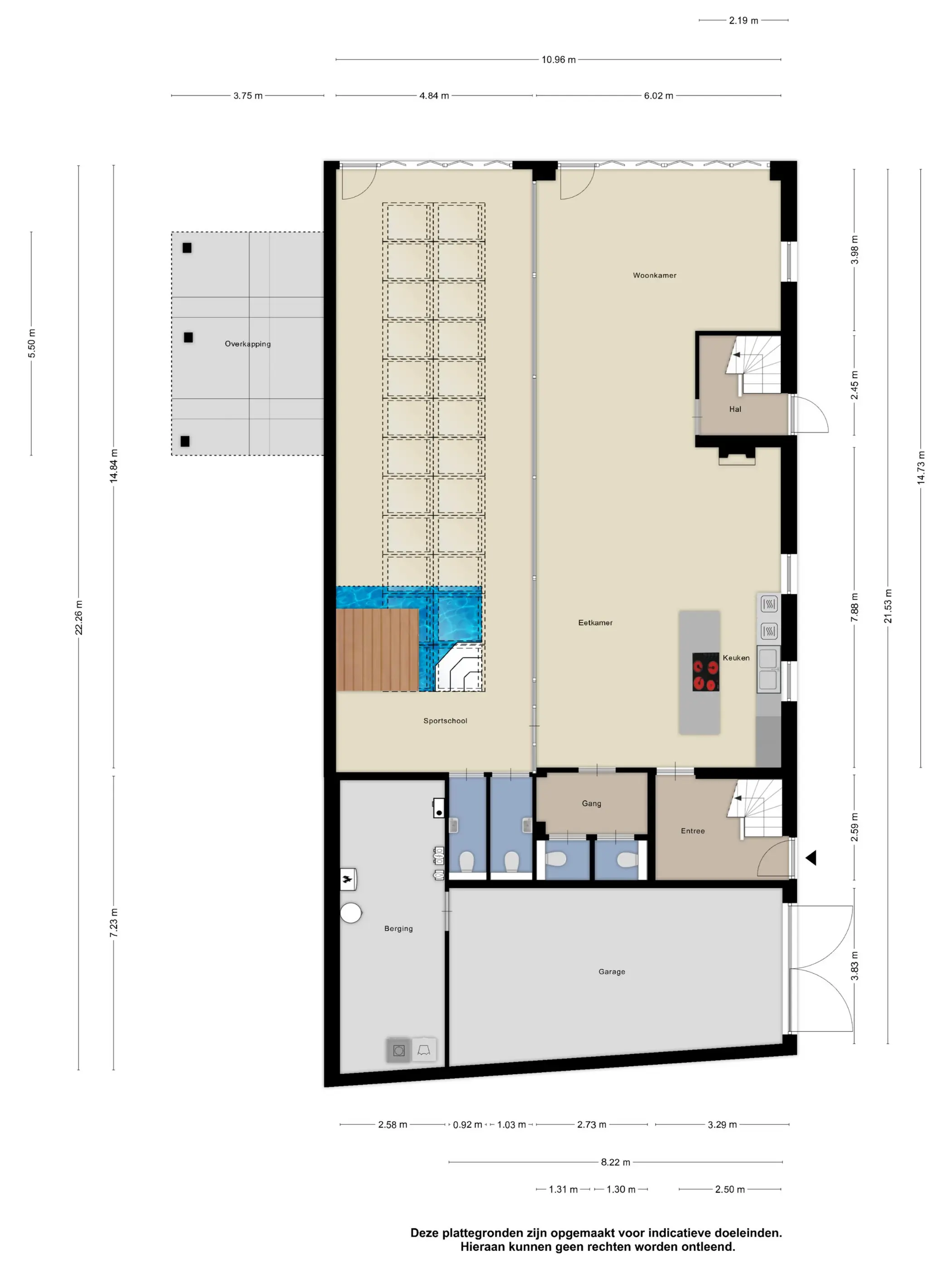 - Overdekte wellness met zwembad, sauna, douche, sportruimte en twee extra toiletruimtes;