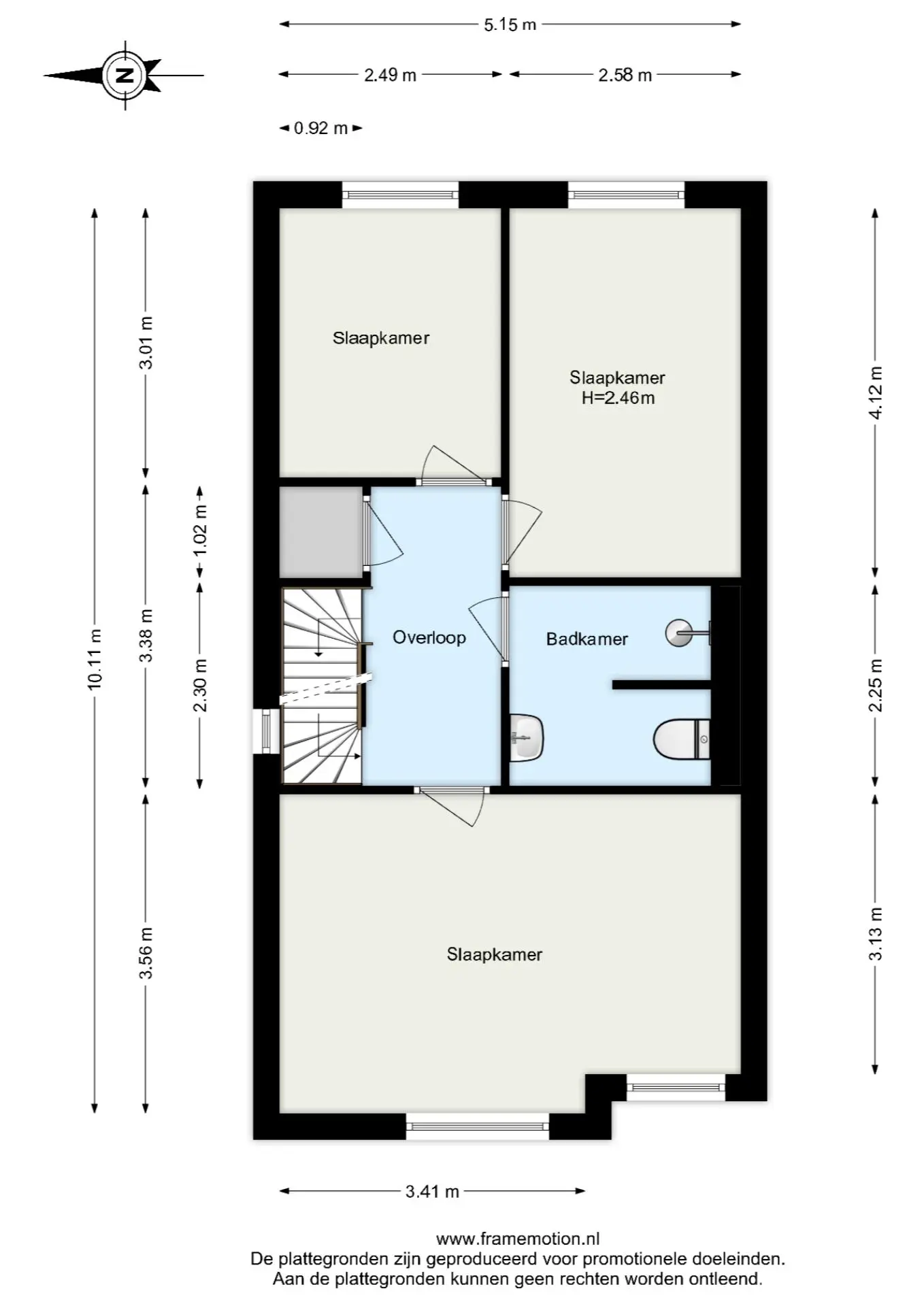 Slaapkamer 2 (ca. 11 m²) gelegen aan de achterzijde van de woning