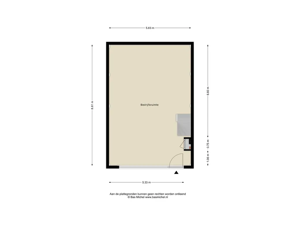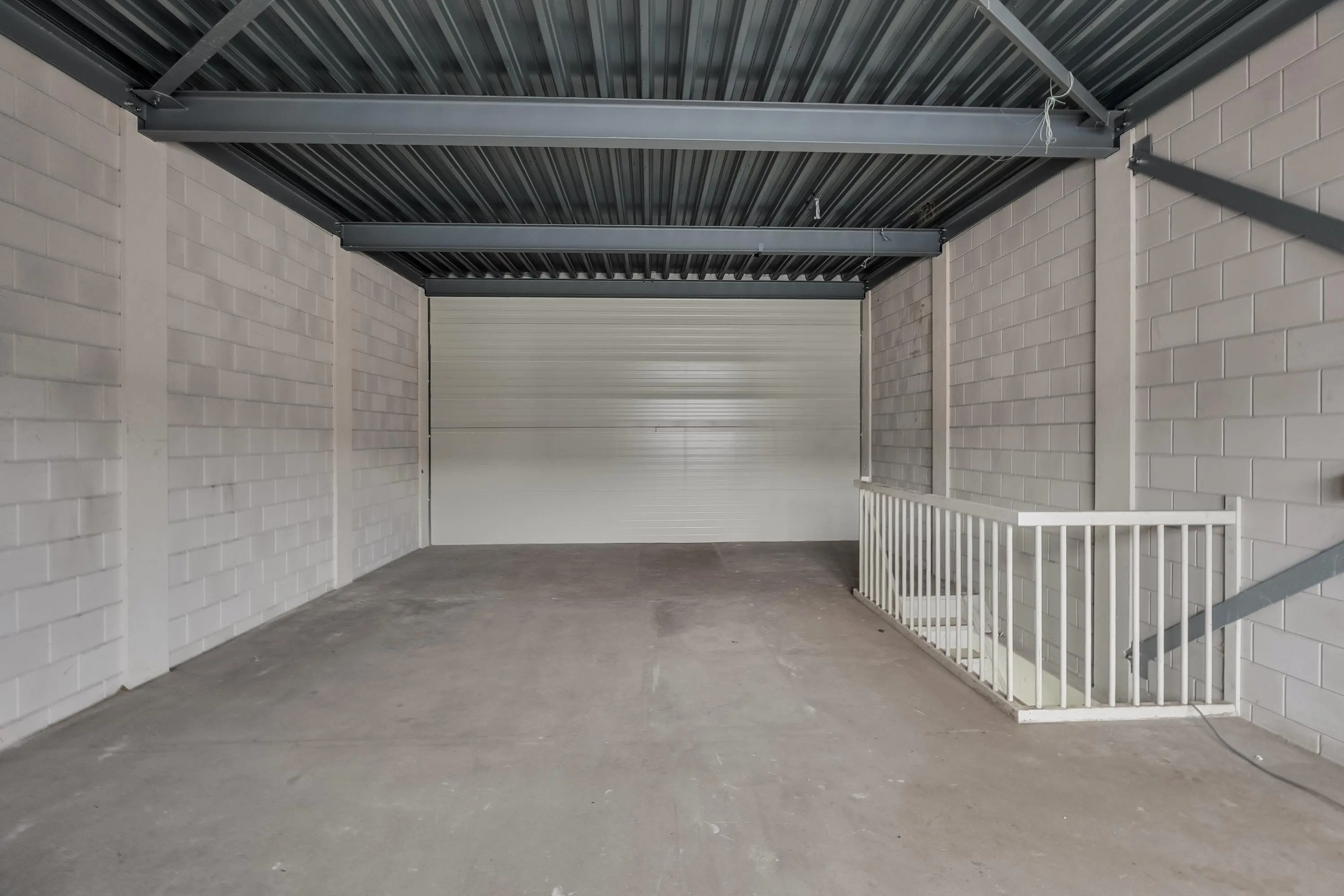 De bedrijfs-/opslagruimte voorzien van een glad afgewerkte betonvloer.