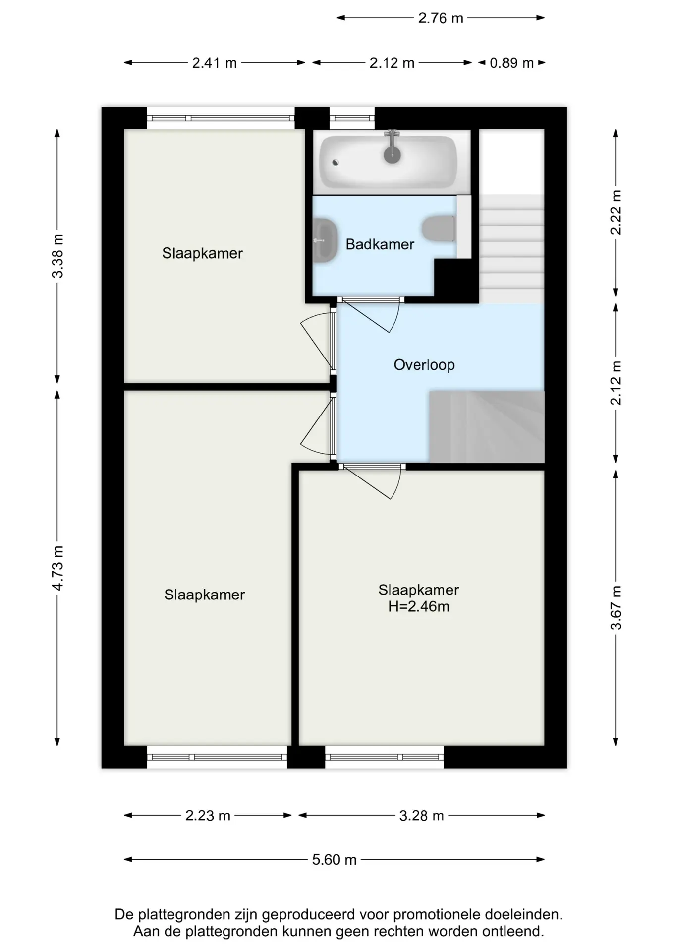 Op de eerste verdieping vindt u een ruime overloop die toegang geeft tot drie slaapkamers en de badkamer. De overloop heeft een open trap naar de tweede verdieping.