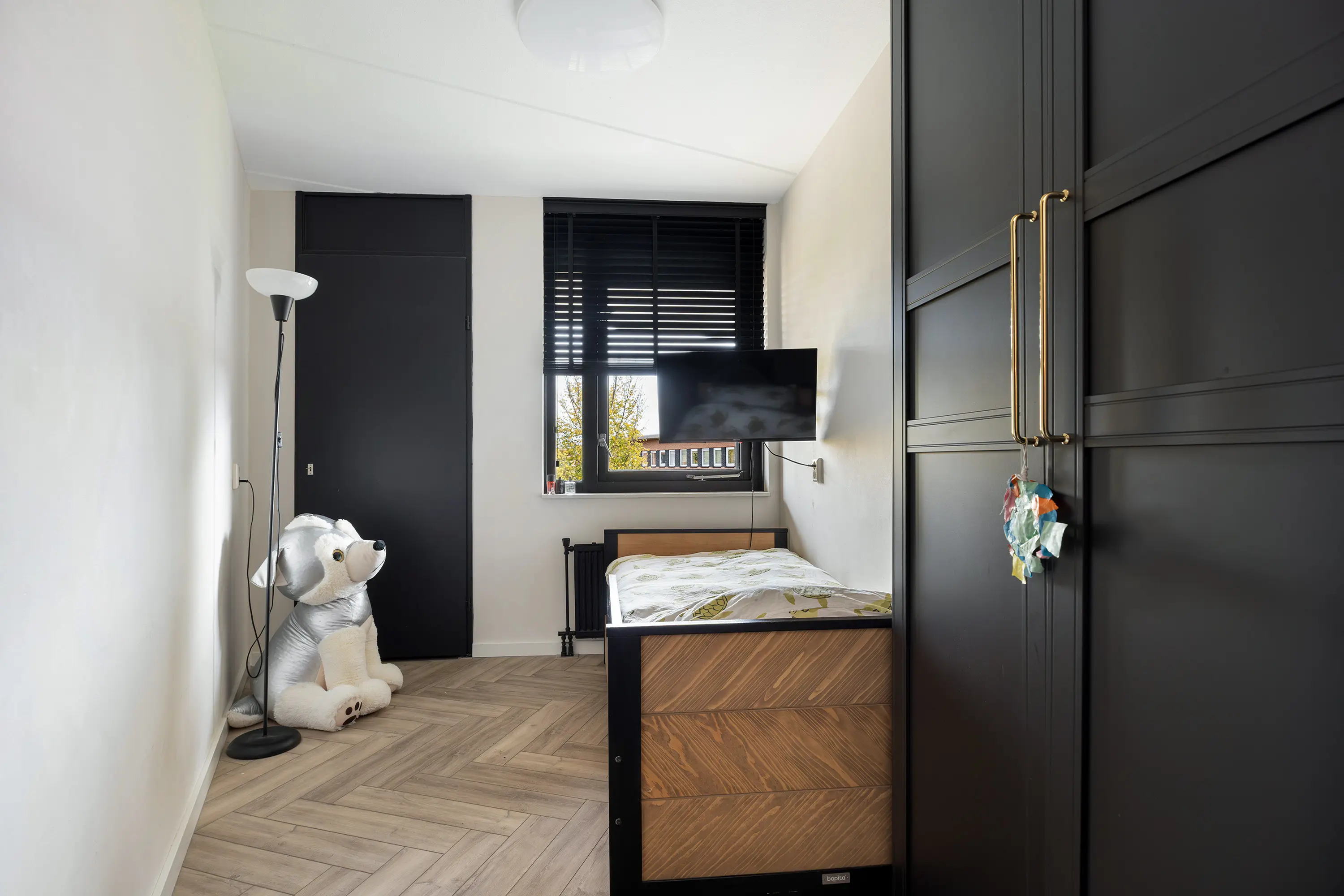 Aansluitend bevindt zich een extra multifunctionele ruimte: ideaal als speelkamer, kantoor of hobbyruimte. Deze kamer beschikt over een inbouwkast én toegang tot het balkon aan de voorzijde.