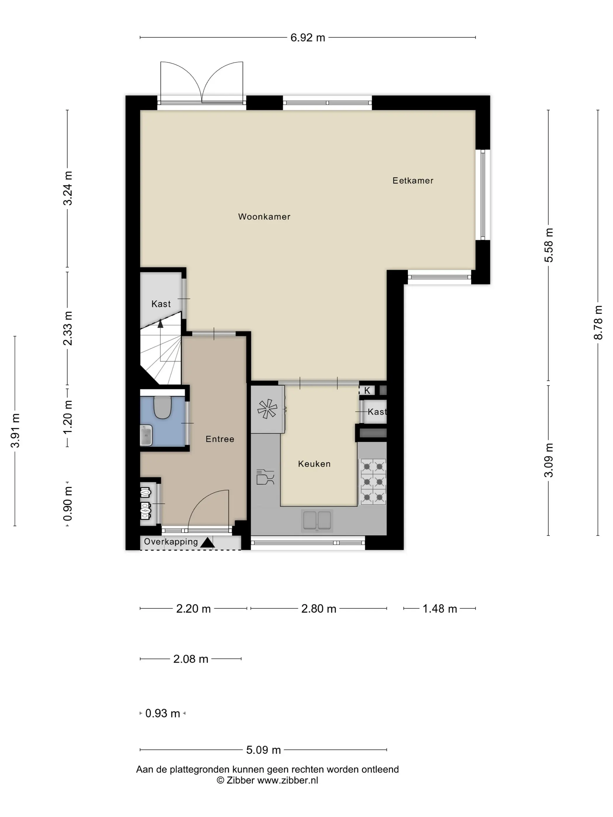 De woonkamer met uitbouw aan de zijkant (ca. 32 m2) is voorzien van een lichte tegelvloer. De uitbouw vormt een sfeervol verlengstuk van de leefruimte en biedt een perfecte plek voor het eetgedeelte – hier dineert u met uitzicht op de tuin en geniet u van extra lichtinval. De woonkamer is verder voorzien van een trapkast. Middels een loopdeur heeft u toegang tot de achtertuin. Middels openslaande deuren heeft u toegang tot de keuken.