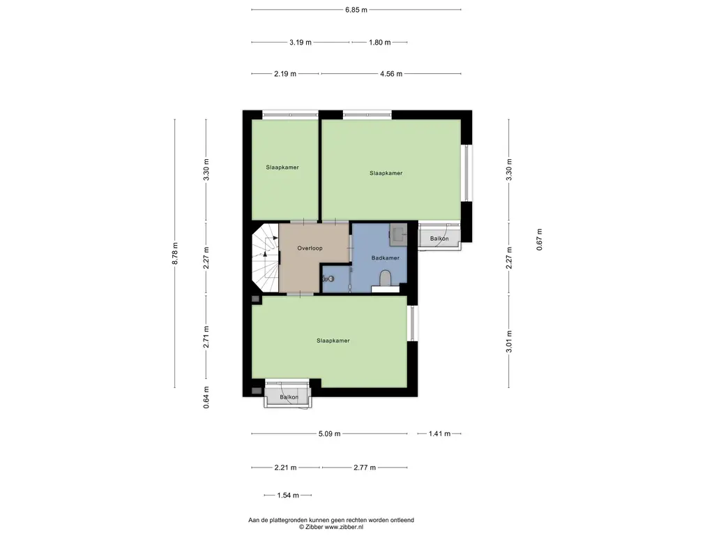 Slaapkamer 3 (ca. 7 m2) is gelegen aan de achterzijde van de woning.