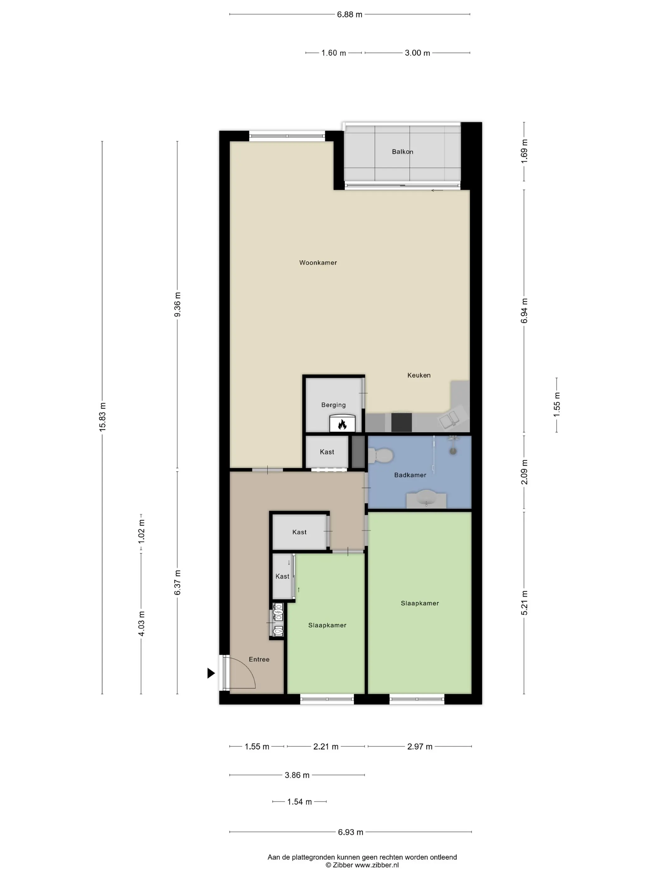 - Op het zuiden gelegen balkon, voorzien van zonwering;
