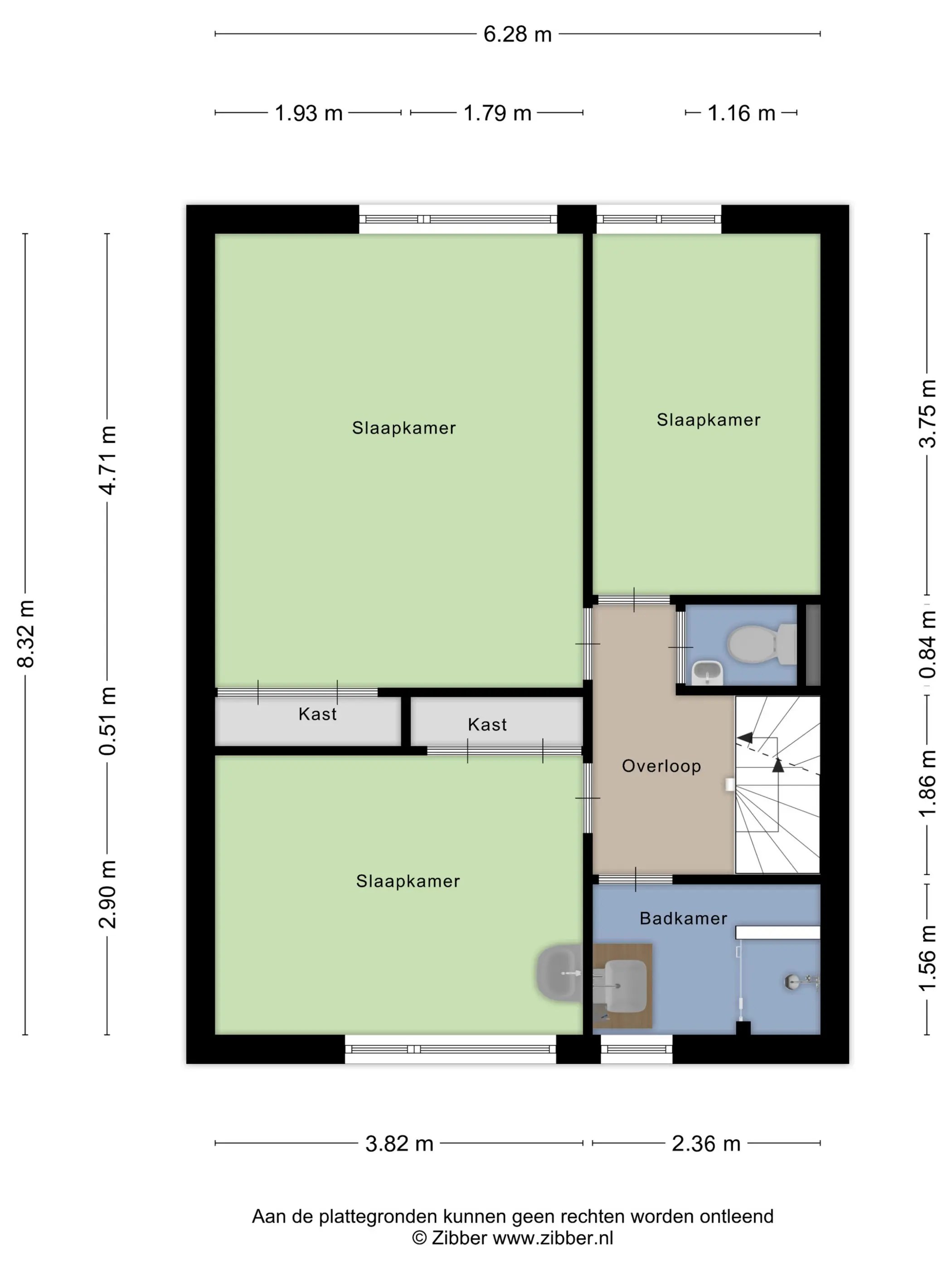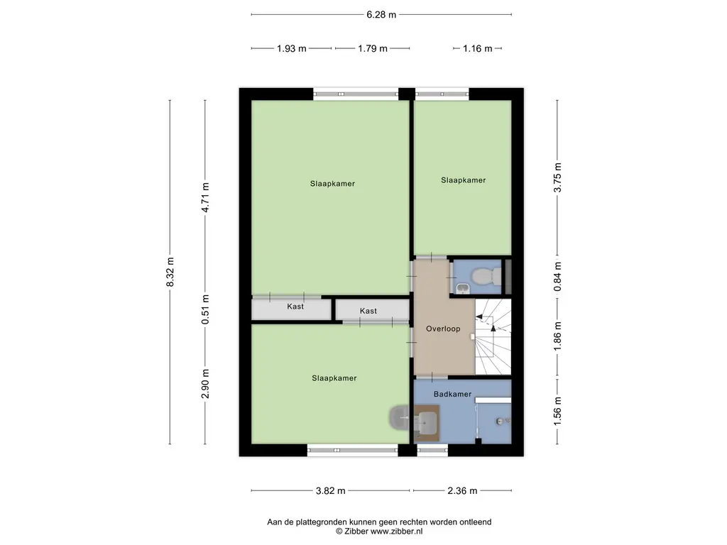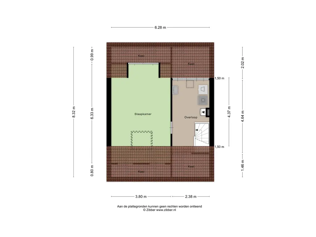 Op de overloop van de tweede verdieping tref je een wastafel met planchet en spiegel, en de aansluitingen voor wasmachine en droger. Onder de schuine kappen is veel bergruimte beschikbaar. De CV-ketel bevindt zich ook op de overloop.