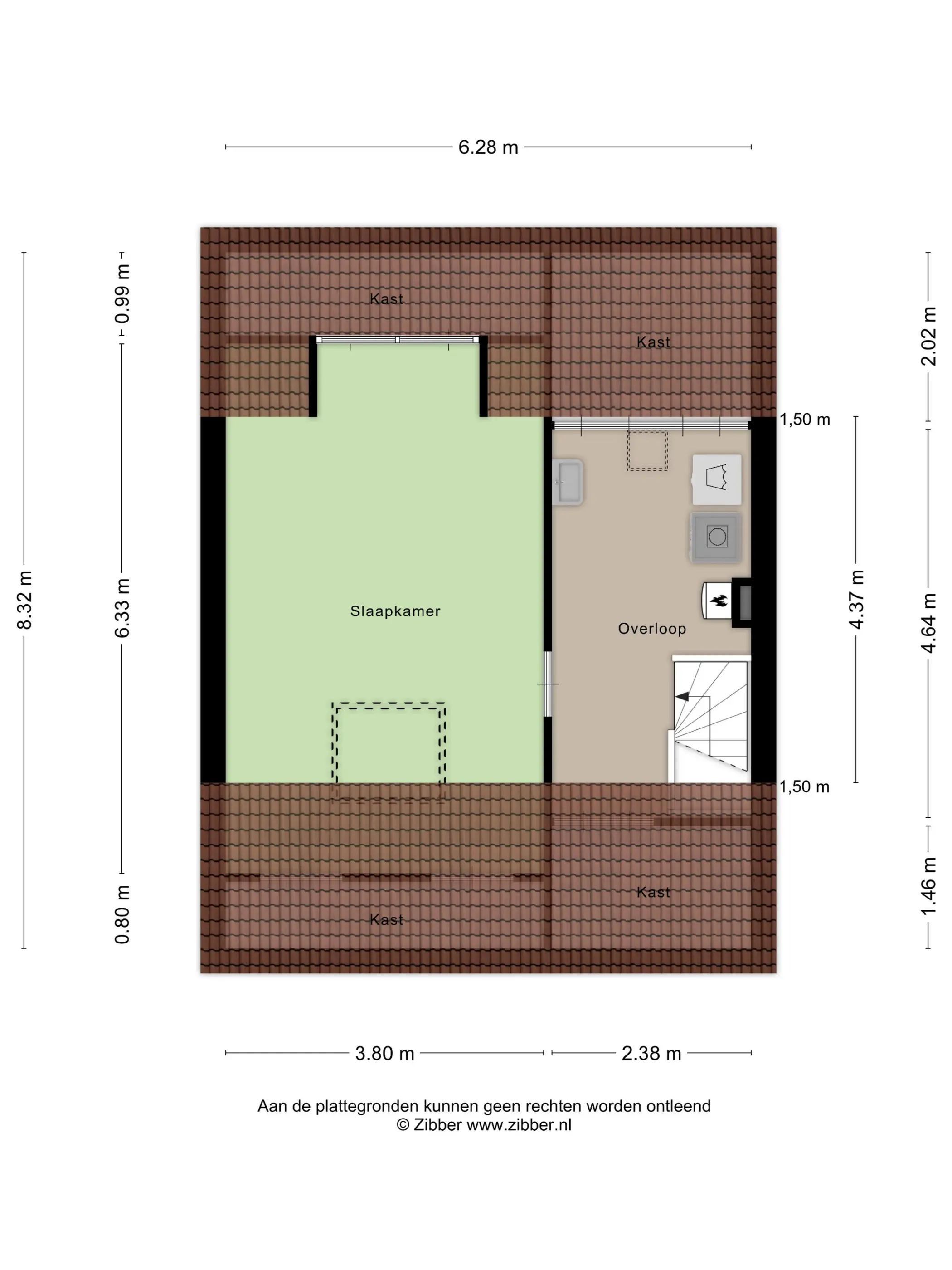 De zolderkamer van 27 m² is heerlijk ruim en licht dankzij het grote dakraam en de dakkapel. Perfect als slaap- of hobbykamer, met veel bergruimte achter de schotten.