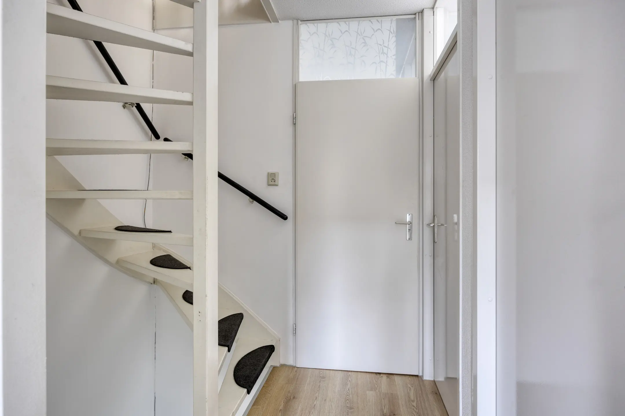 Deze verdieping is afgewerkt met een laminaatvloer.