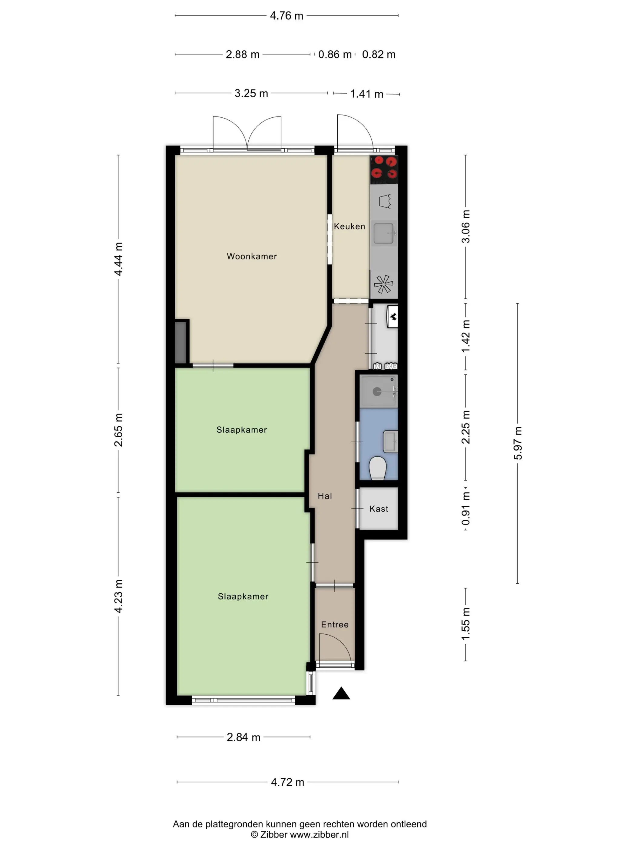 Appartement met tuin | 2 slaapkamers | 51 m² | tuin van 56 m² (ZW)
