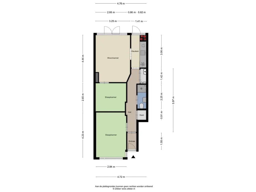 Aan de voorzijde van de woning vind je de hoofdslaapkamer van ruim 12 m² – groot genoeg voor een tweepersoonsbed, een royale kledingkast én zelfs nog een extra meubel zoals een make-uptafel of tv-meubel.