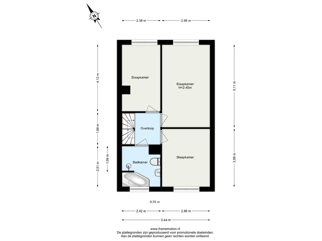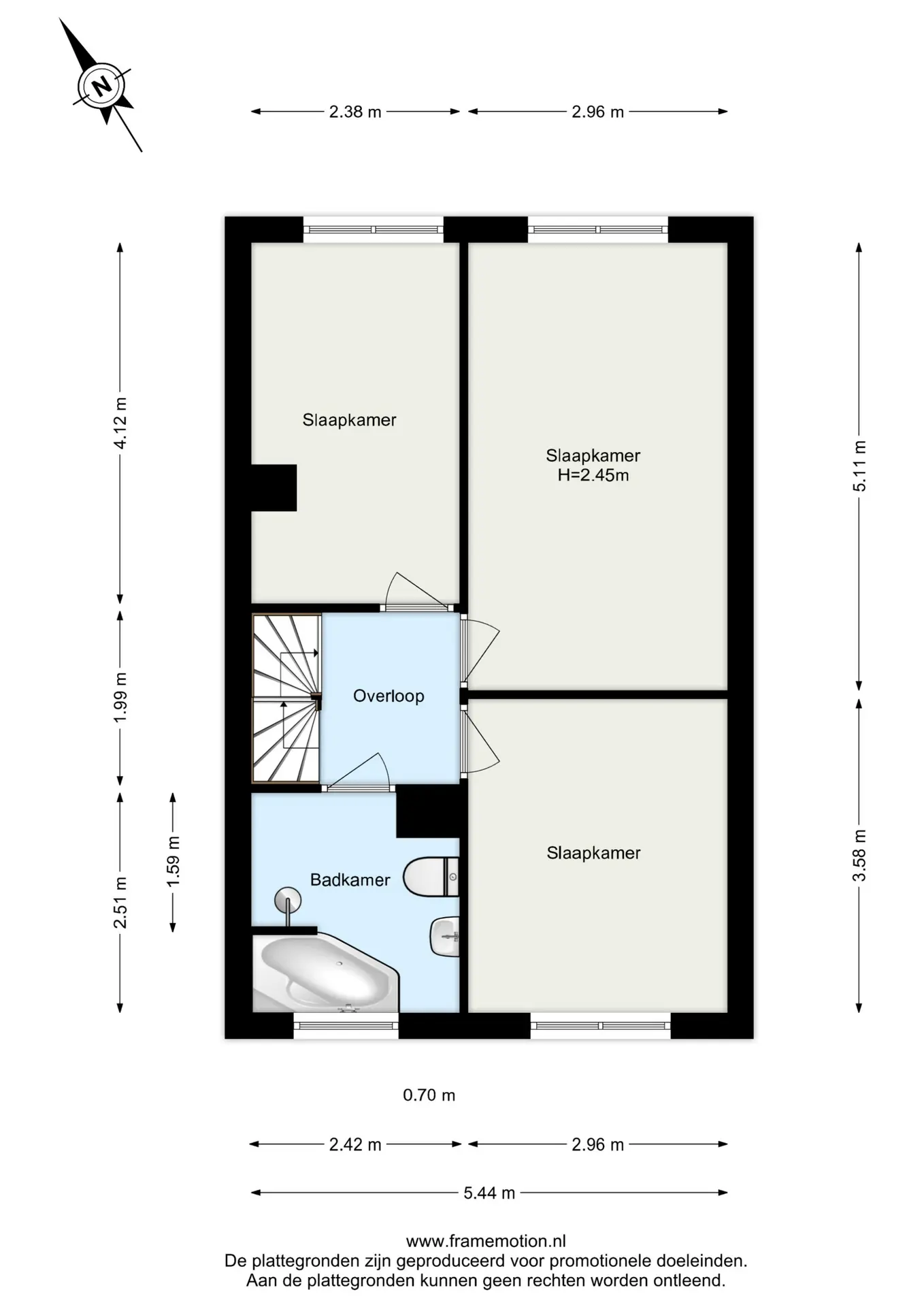 De overloop geeft toegang tot drie slaapkamers en de badkamer.