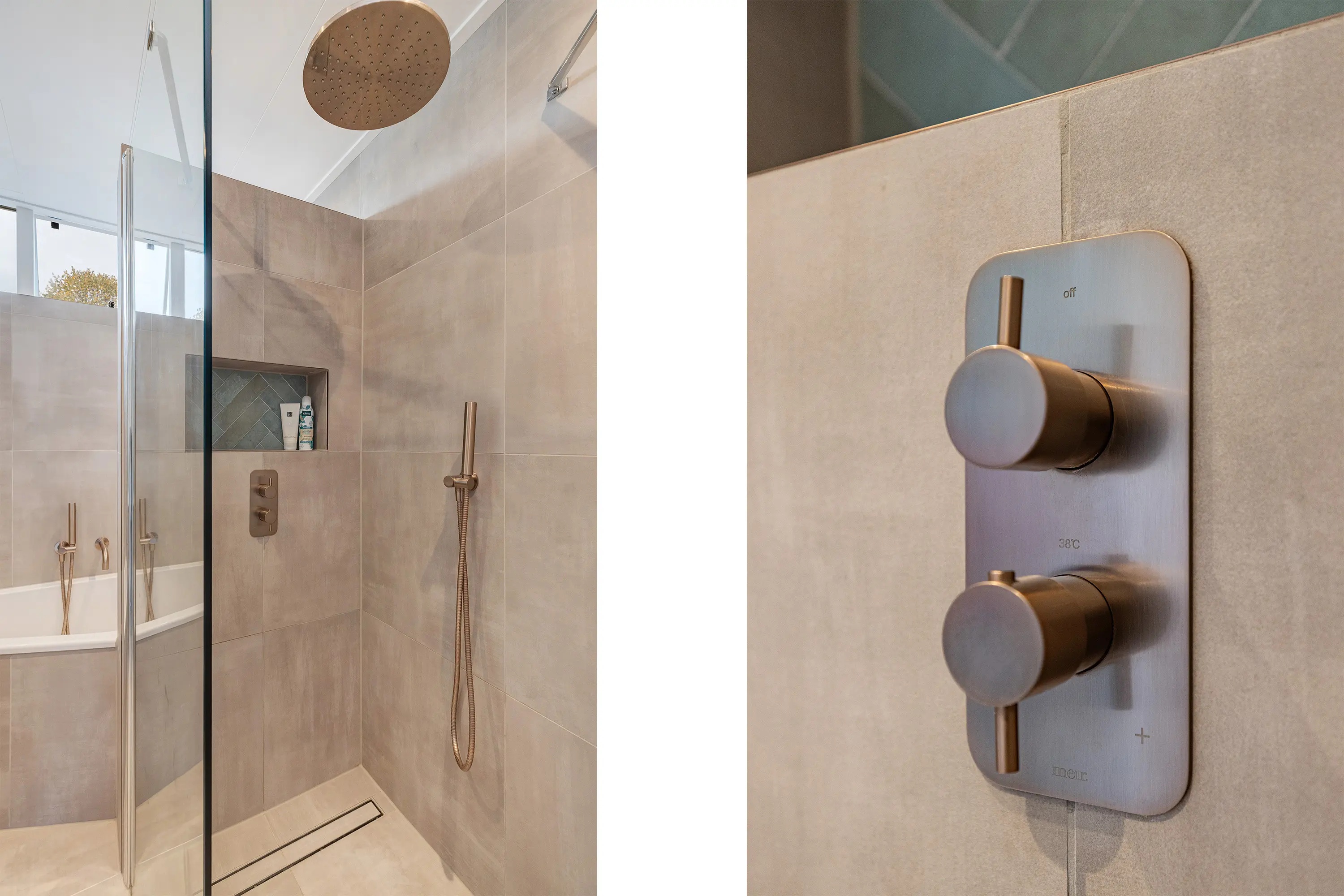 - Luxe badkamer (2023) met ligbad, inloopdouche en rosékleurige kranen