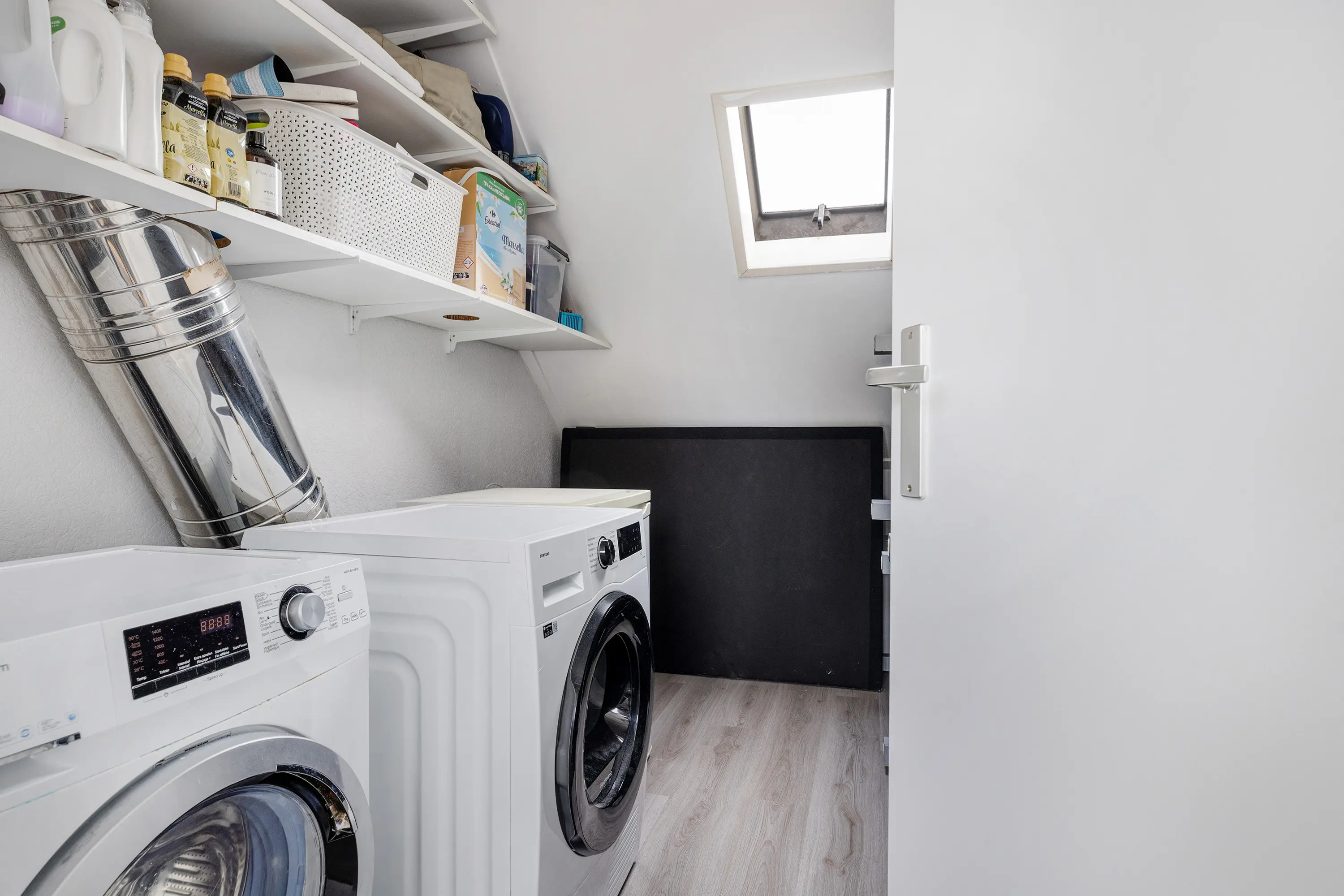 Op de tweede verdieping bevindt zich de vierde slaapkamer, een aparte wasruimte en toegang tot het dakterras.