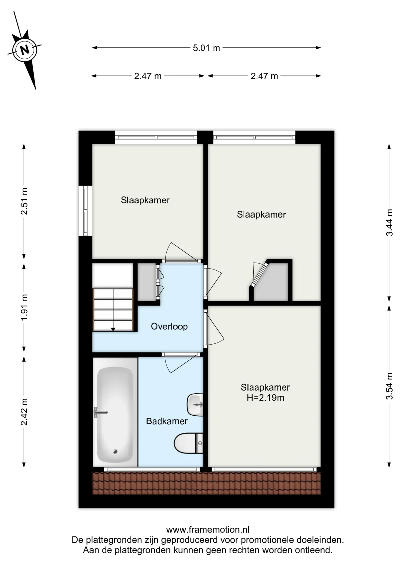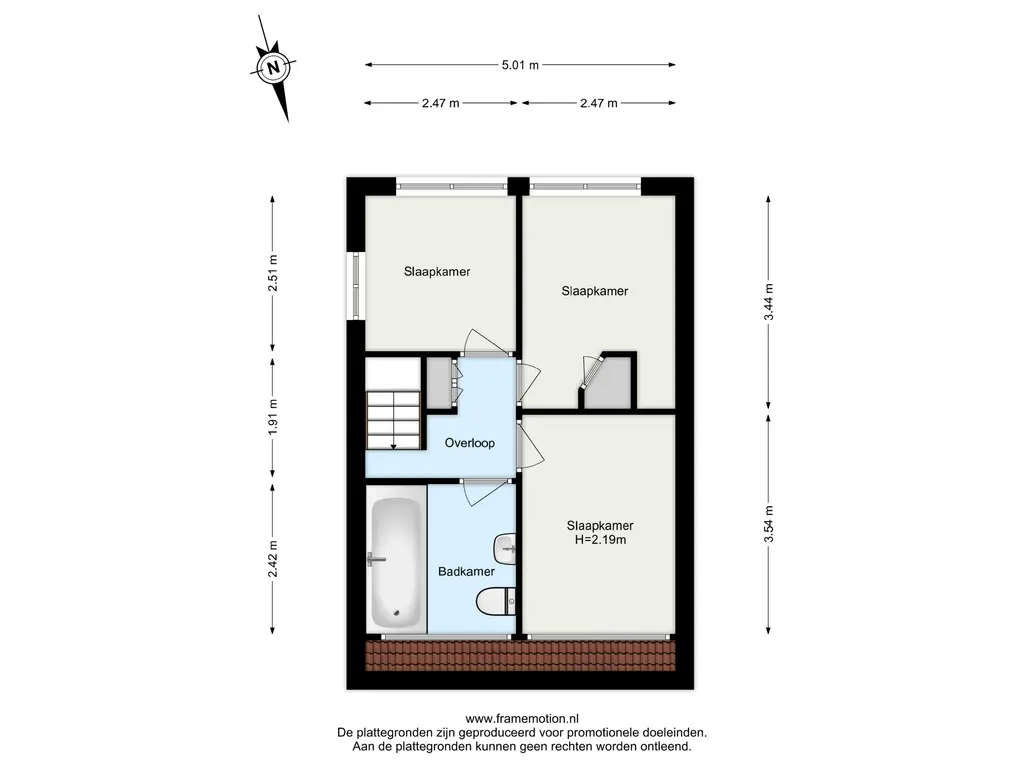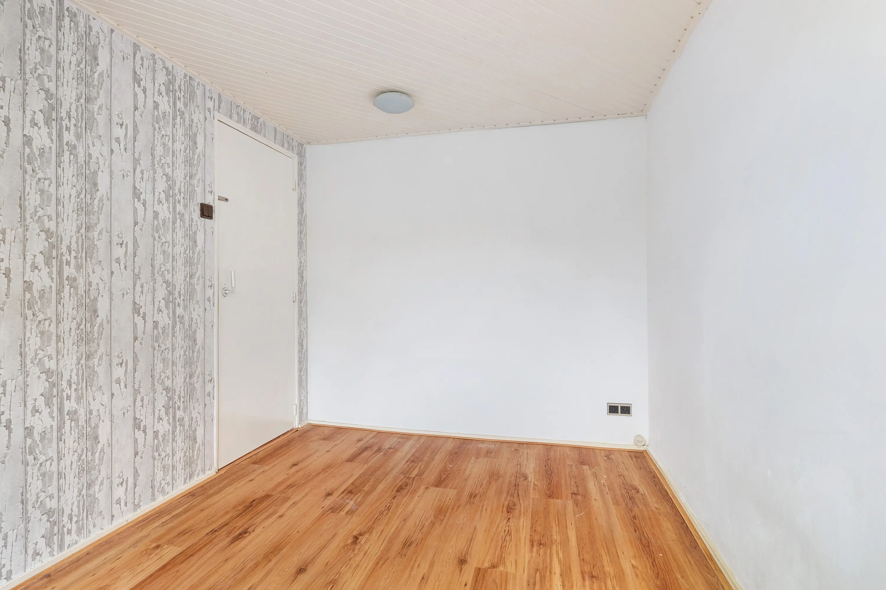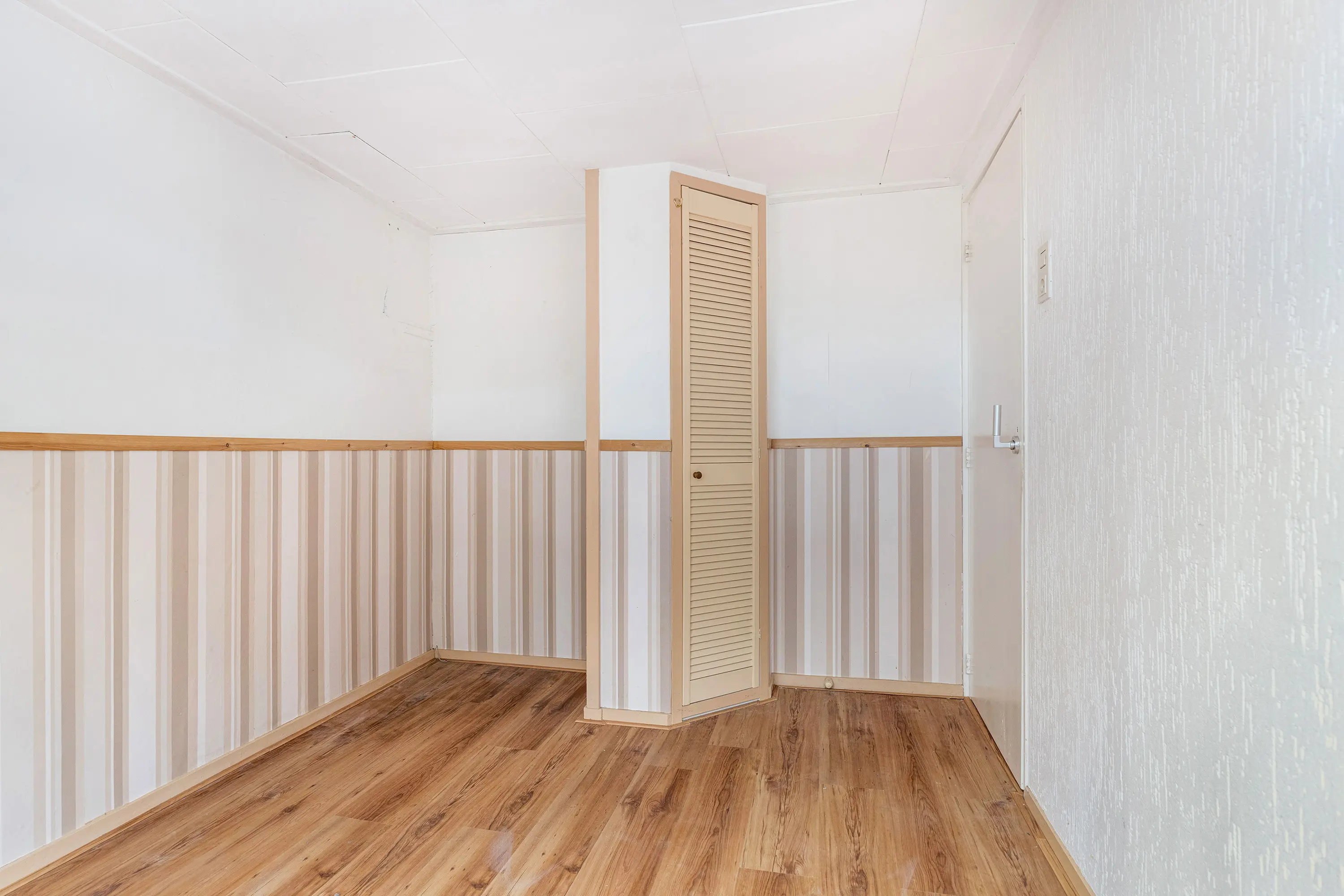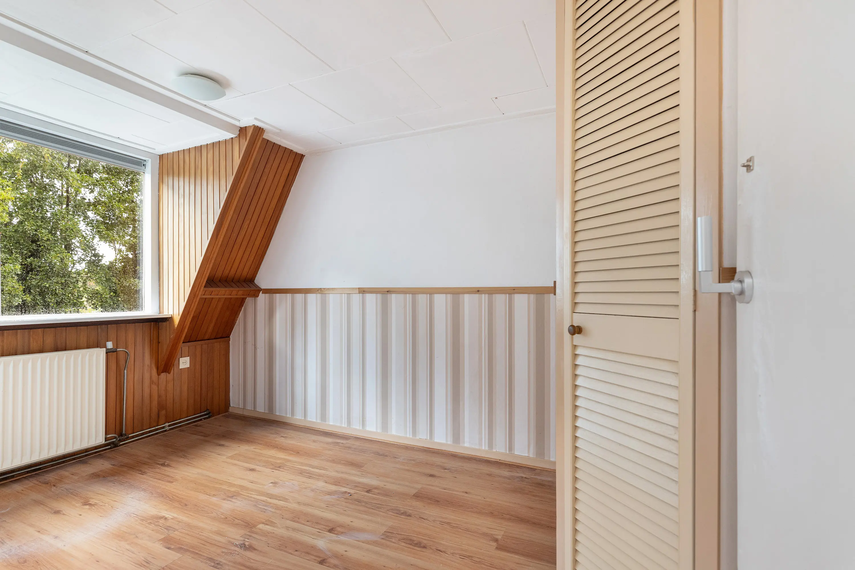 Via de overloop bereik je drie slaapkamers en de badkamer. Ook is er een handige vaste kast aanwezig.