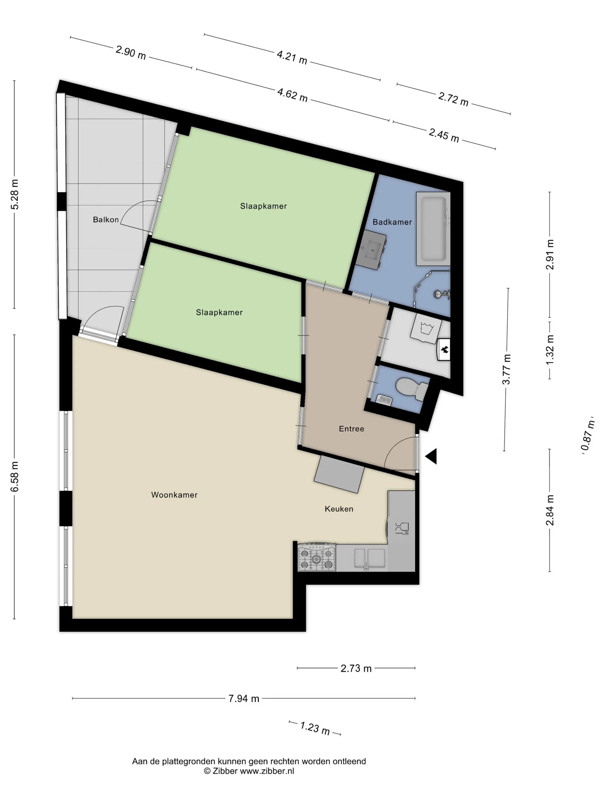 Slaapkamer 1 (ca. 13 m2) is gelegen aan de achterzijde van de woning en is voorzien van een duurzame laminaatvloer. Via een loopdeur met hor heeft u toegang het balkon.