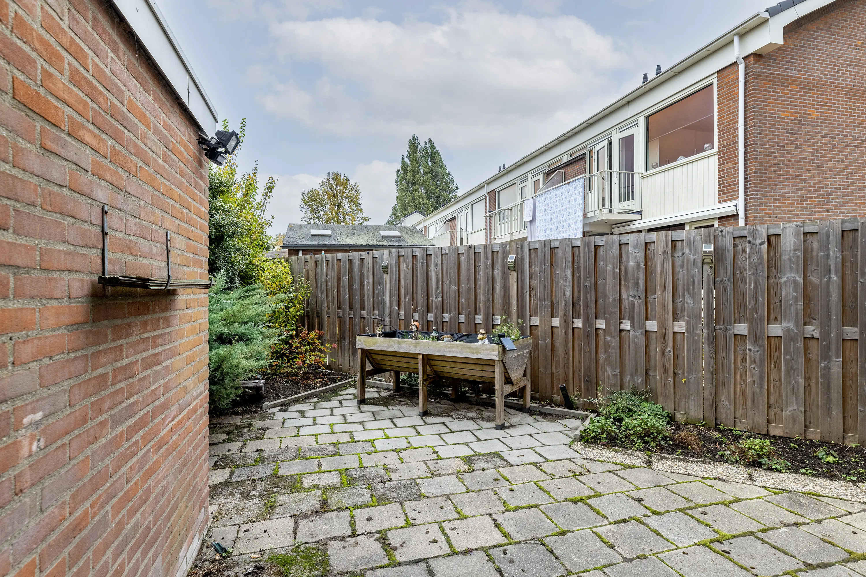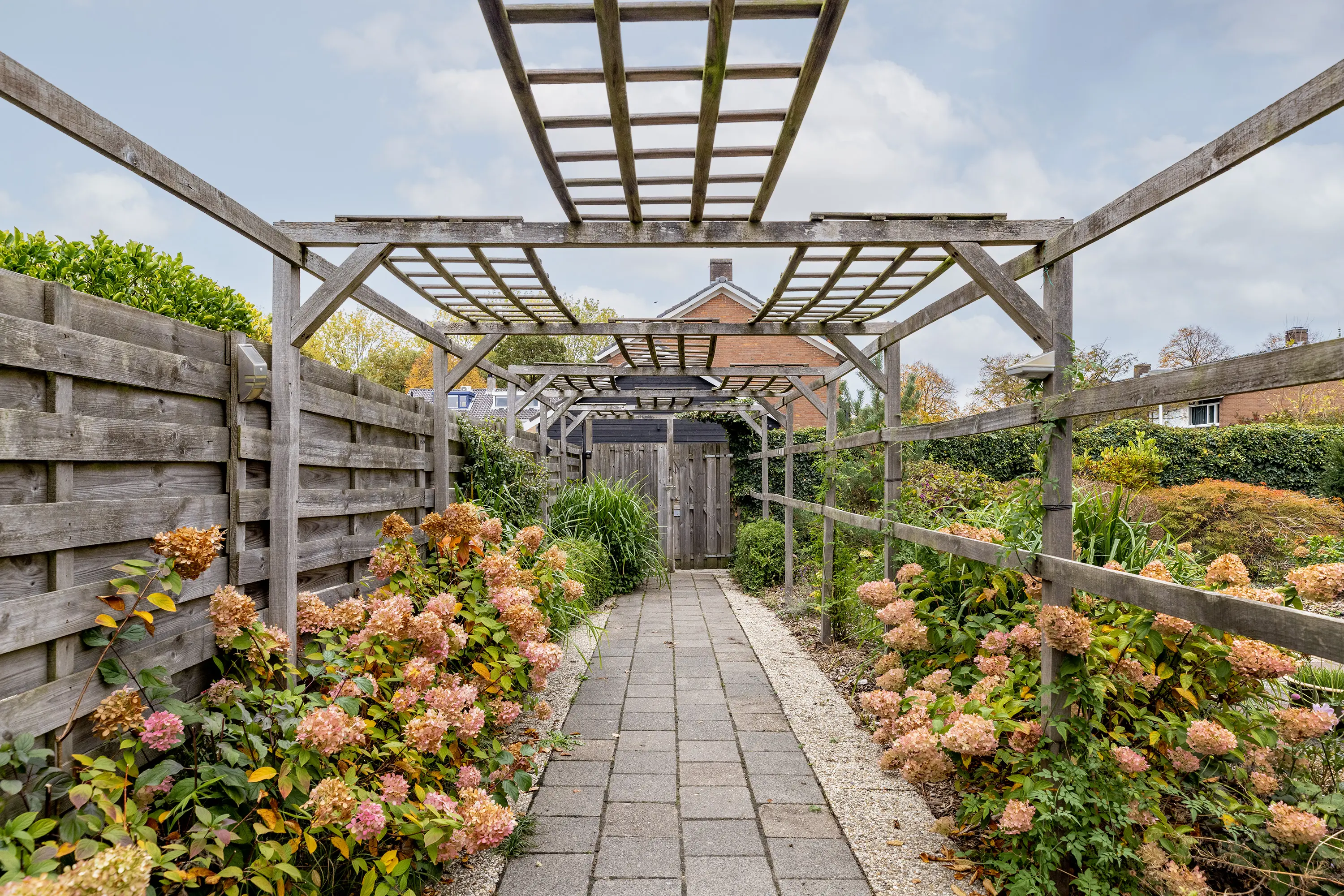 De tuin is werkelijk een unieke buitenruimte: rondom de woning gelegen, met volop groen, privacy en verschillende zitmogelijkheden. De riante zijtuin is perfect voor lange zomeravonden of een gezellige barbecue met vrienden. In 1978 is er een extra perceel van 168 m² bijgekocht, wat het totale perceel brengt op een riante 345 m², een buitenkans in deze gewilde woonwijk.