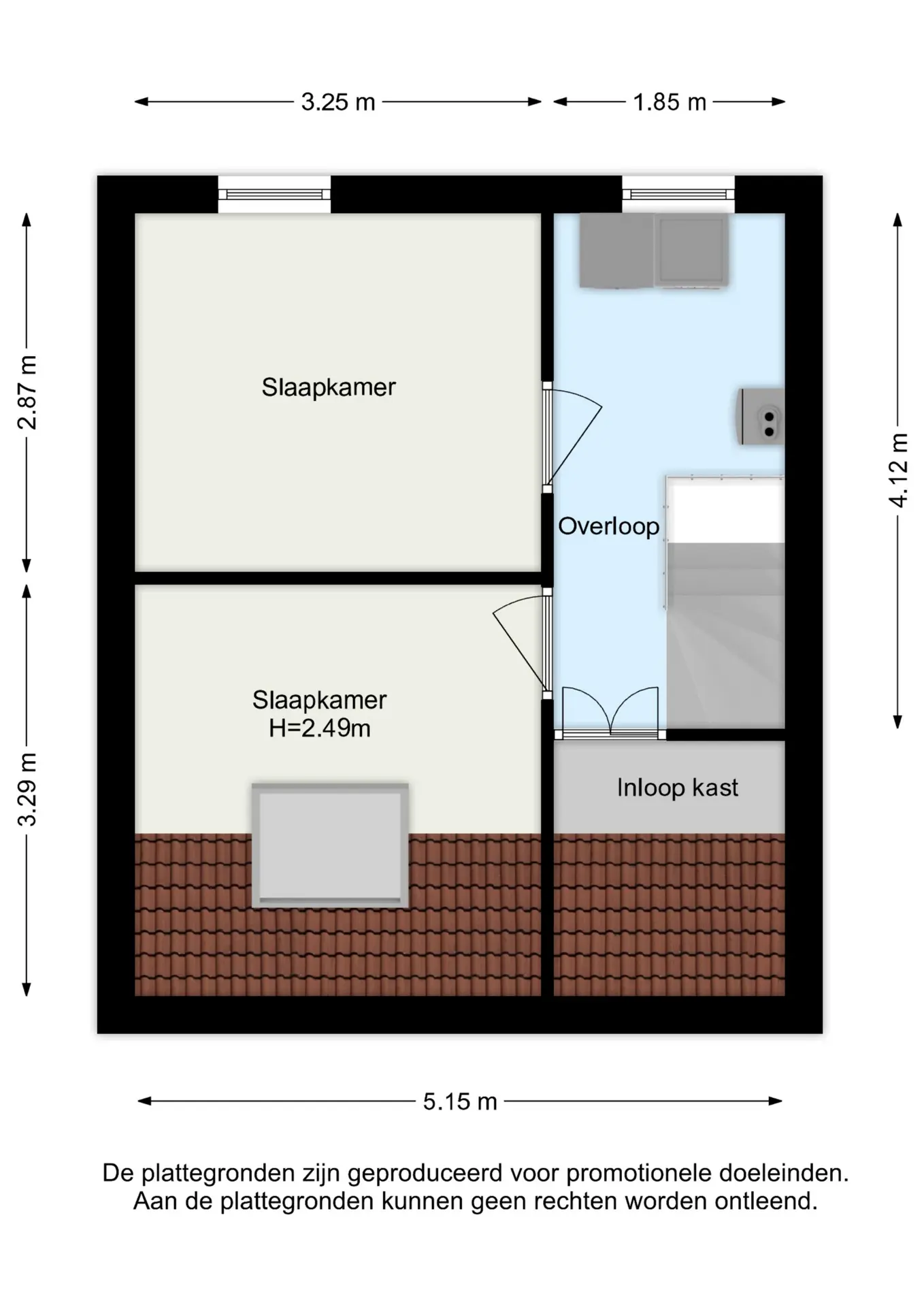 De tweede verdieping telt twee slaapkamers en een praktische inloopkast. Eén slaapkamer (ca. 10 m²) aan de achterzijde beschikt over een Velux-dakraam en een PVC-vloer, terwijl de slaapkamer (ca. 9 m²) aan de voorzijde is afgewerkt met zachte vloerbedekking. Naast deze slaapvertrekken vind je hier de aansluitingen voor de wasmachine en de droger, de opstelling voor de CV en een extra inloopkast, waardoor het huis niet alleen comfortabel, maar ook praktisch is ingericht. Ideaal voor het inrichten van een hobbyruimte, thuiswerkplek of extra slaapruimte.