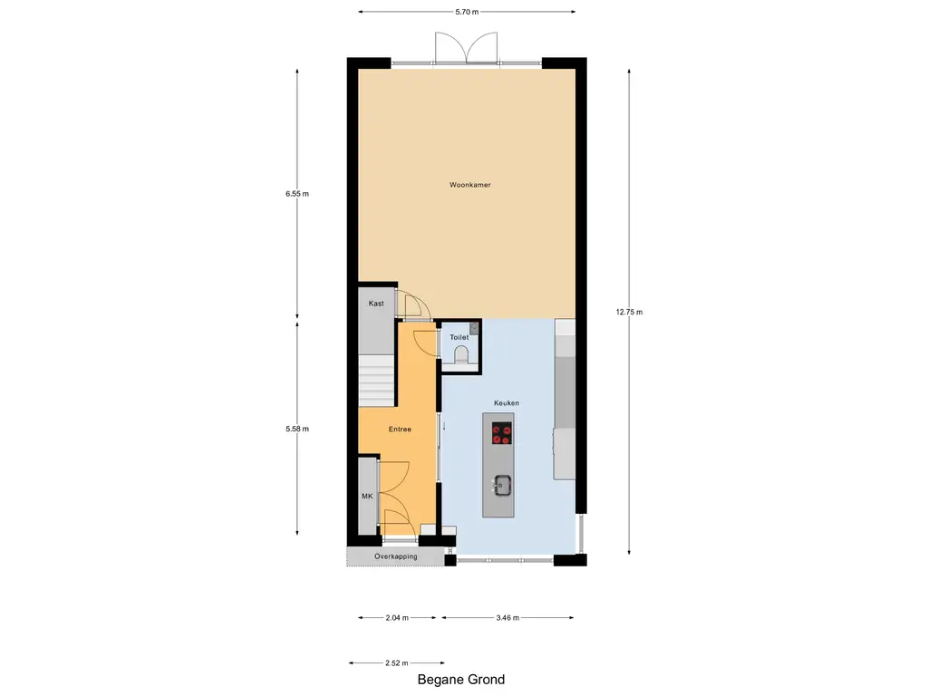 Zodra je de voordeur opent, ervaar je direct de royale opzet en het speelse licht dat door de woning stroomt. Je stapt binnen in een uitnodigende hal met ruimte voor jassen en schoenen, een moderne meterkast en een eigentijds toilet. Hier voel je al de rust en het comfort die de woning te bieden heeft. Vanuit de hal leidt een fraaie glazen deur naar de tuingerichte woonkamer, waar de middagzon royaal naar binnen valt. Terwijl je de eerste stappen zet, valt je oog op de strakke wanden en de prachtige grote vloertegels die het geheel een luxe uitstraling geven. De brede raampartijen en openslaande deuren bieden een schilderachtig uitzicht op de achtertuin, je ziet jezelf hier al zitten met een kop koffie terwijl de kinderen buiten spelen. De combinatie van de stoere betonlook vloer en de subtiel afgewerkte wanden geeft de ruimte een eigentijdse, maar toch warme sfeer. Deze woonkamer nodigt uit tot lange avonden met vrienden of een ontspannen weekend met het gezin, waarbij de tuin als vanzelf een verlengstuk van de leefruimte wordt.