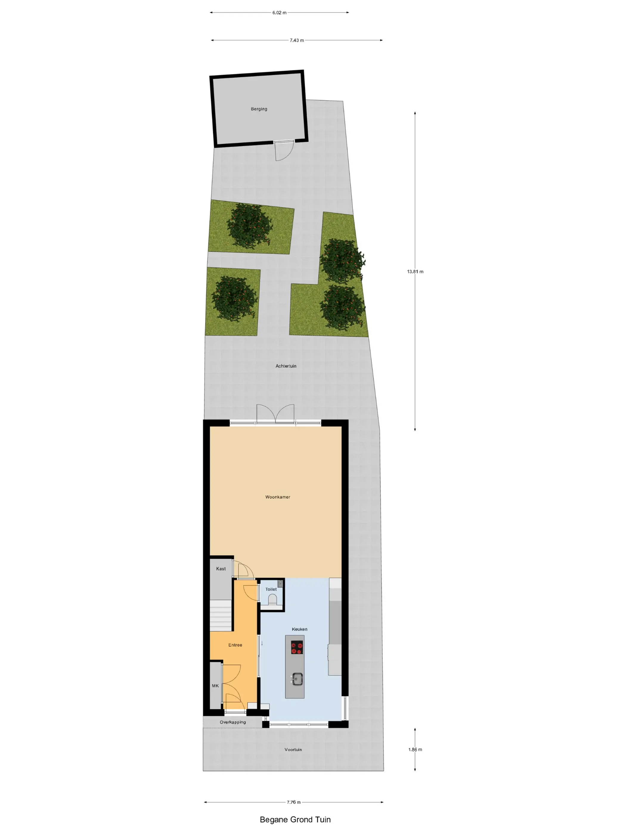 • Fraai aangelegde, diepe achtertuin met berging en achterom