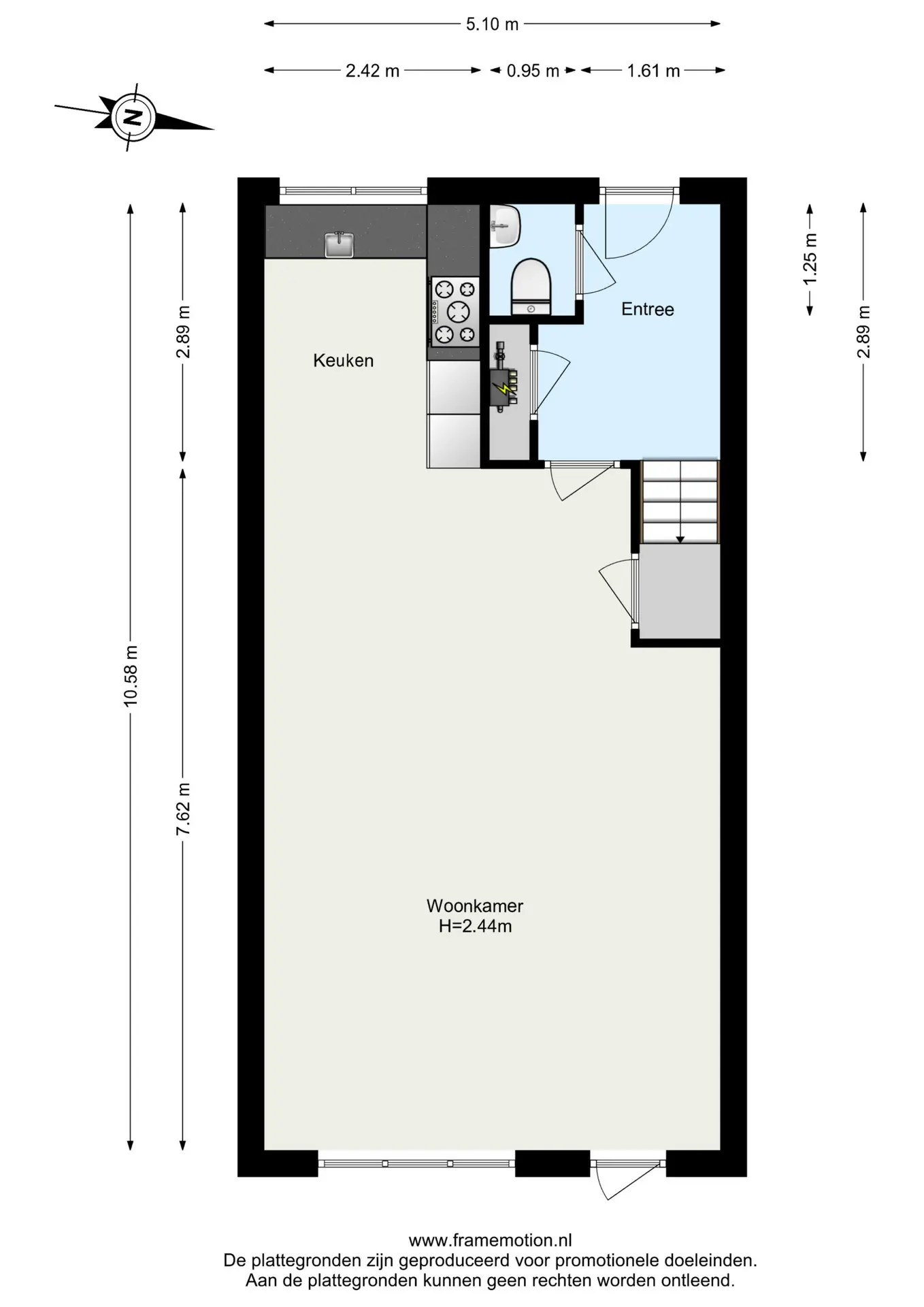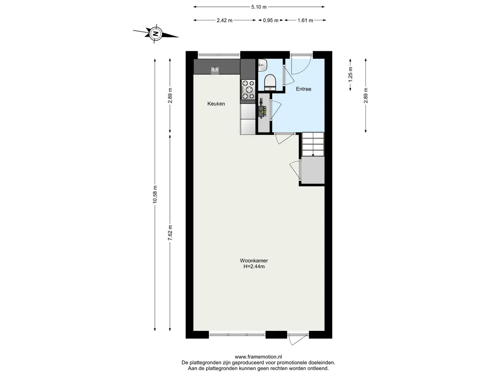 U betreedt de woning via de hal met de meterkast en een moderne toiletruimte in wit/grijze kleurstelling, voorzien van hangend toilet en fonteintje. Via een stijlvolle zwarte houten paneeldeur komt u in de woonkamer (ca. 39 m²). Deze ruimte is licht en comfortabel dankzij de grote ramen aan de achterzijde en de airco die voor verkoeling op warme dagen zorgt. De trapkast biedt extra bergruimte.