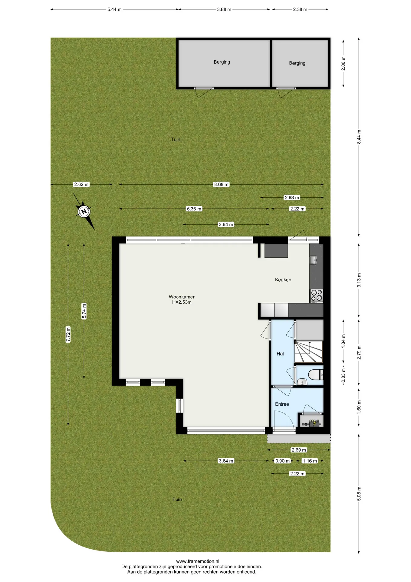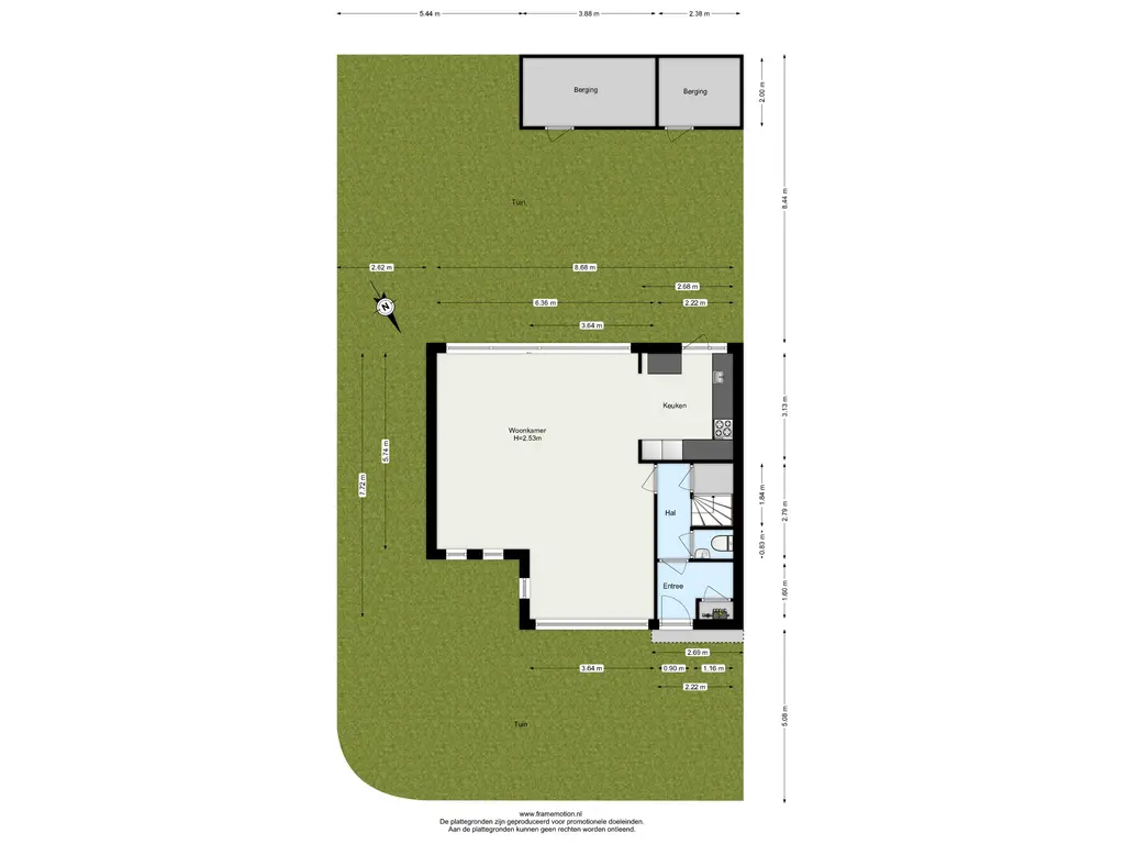 - Vrijstaande stenen berging met eigen oprit en houten overkapping voor extra opslag