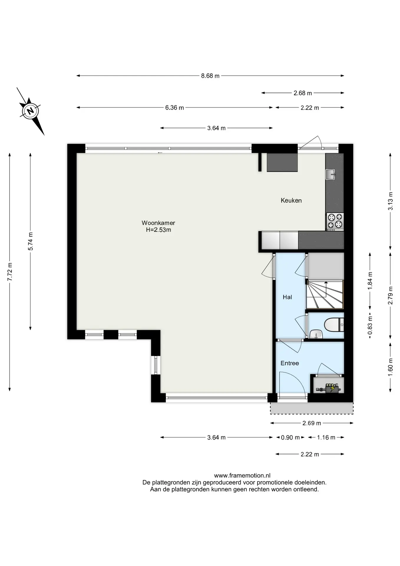 Bij binnenkomst komt u in het voorportaal met meterkast en garderoberuimte. Vanuit hier is er toegang tot de hal met trapopgang, trapkast en een modern afgewerkt toilet met hangend closet, fonteintje en wit/grijze betegeling.
