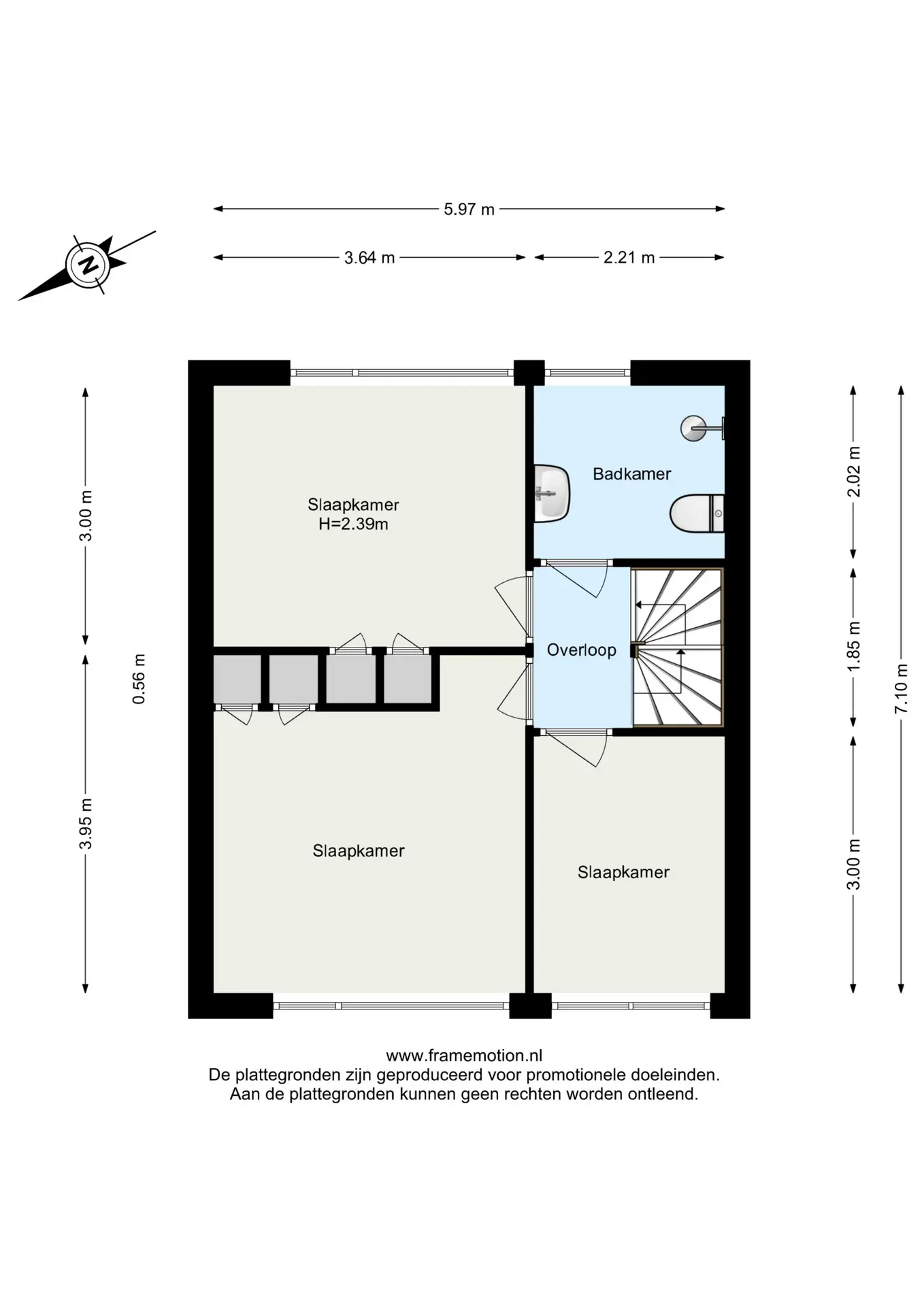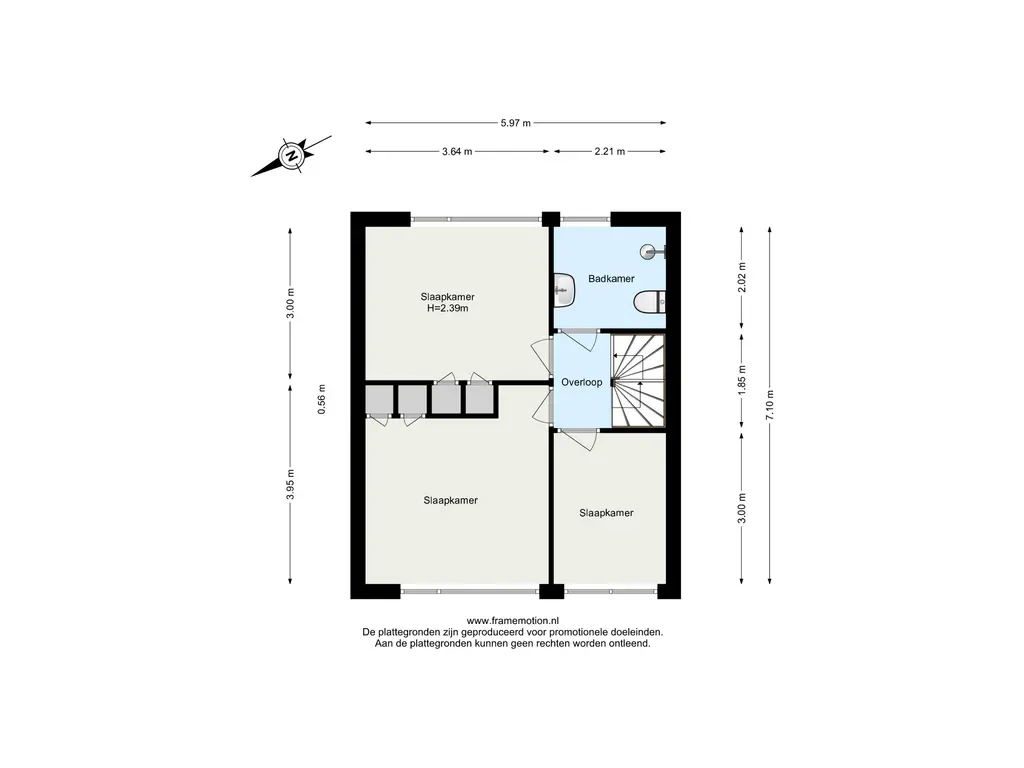 De overloop biedt toegang tot drie slaapkamers en de badkamer.