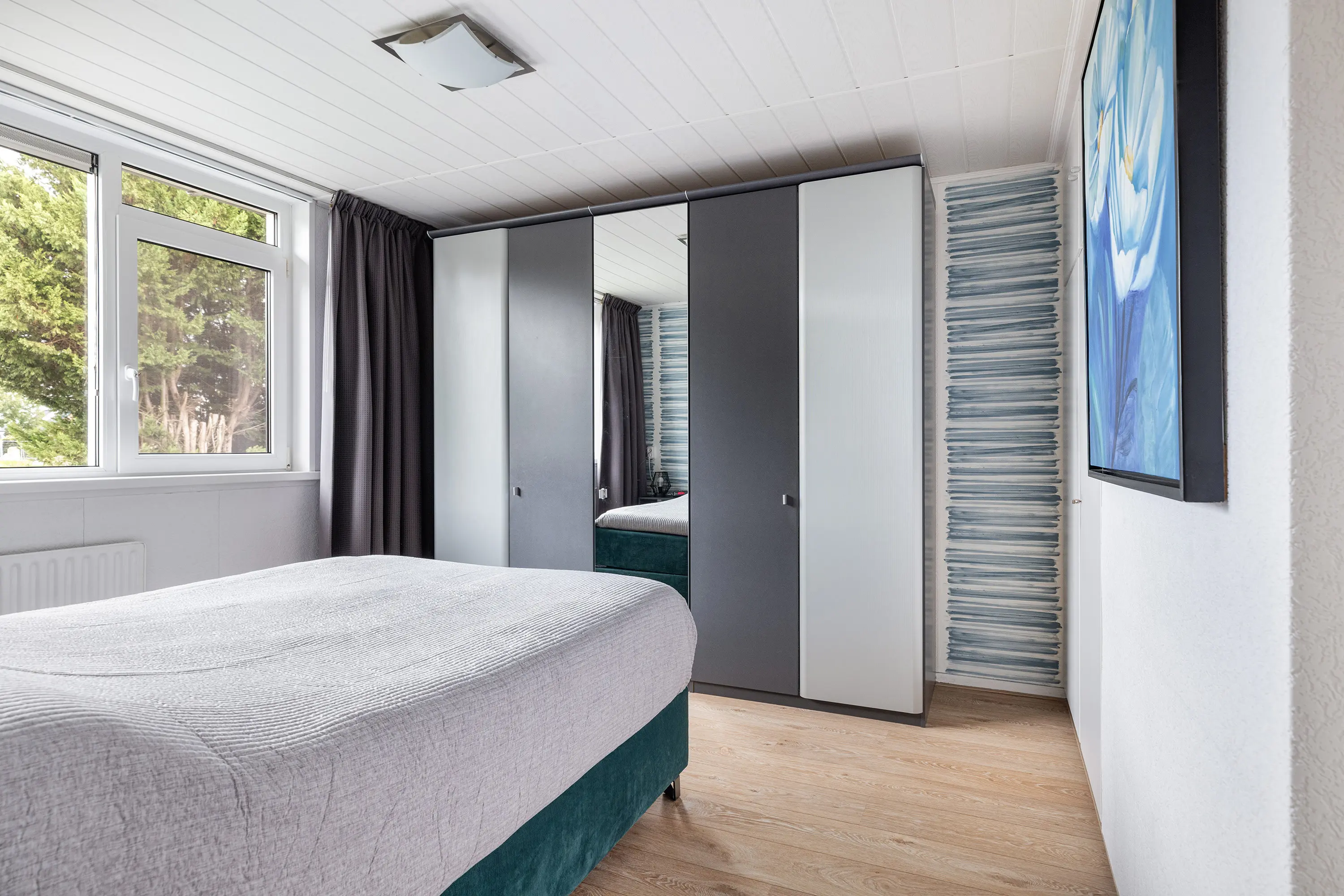 Slaapkamer 1 – gelegen aan de achterzijde, voorzien van laminaatvloer en inbouwkasten
