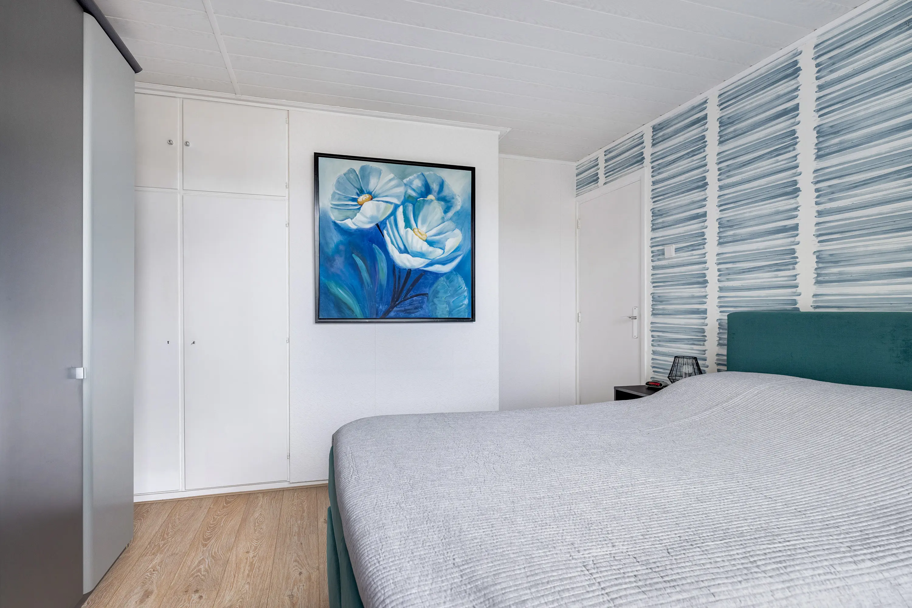 Slaapkamer 2 – aan de voorzijde, eveneens met laminaatvloer en inbouwkast