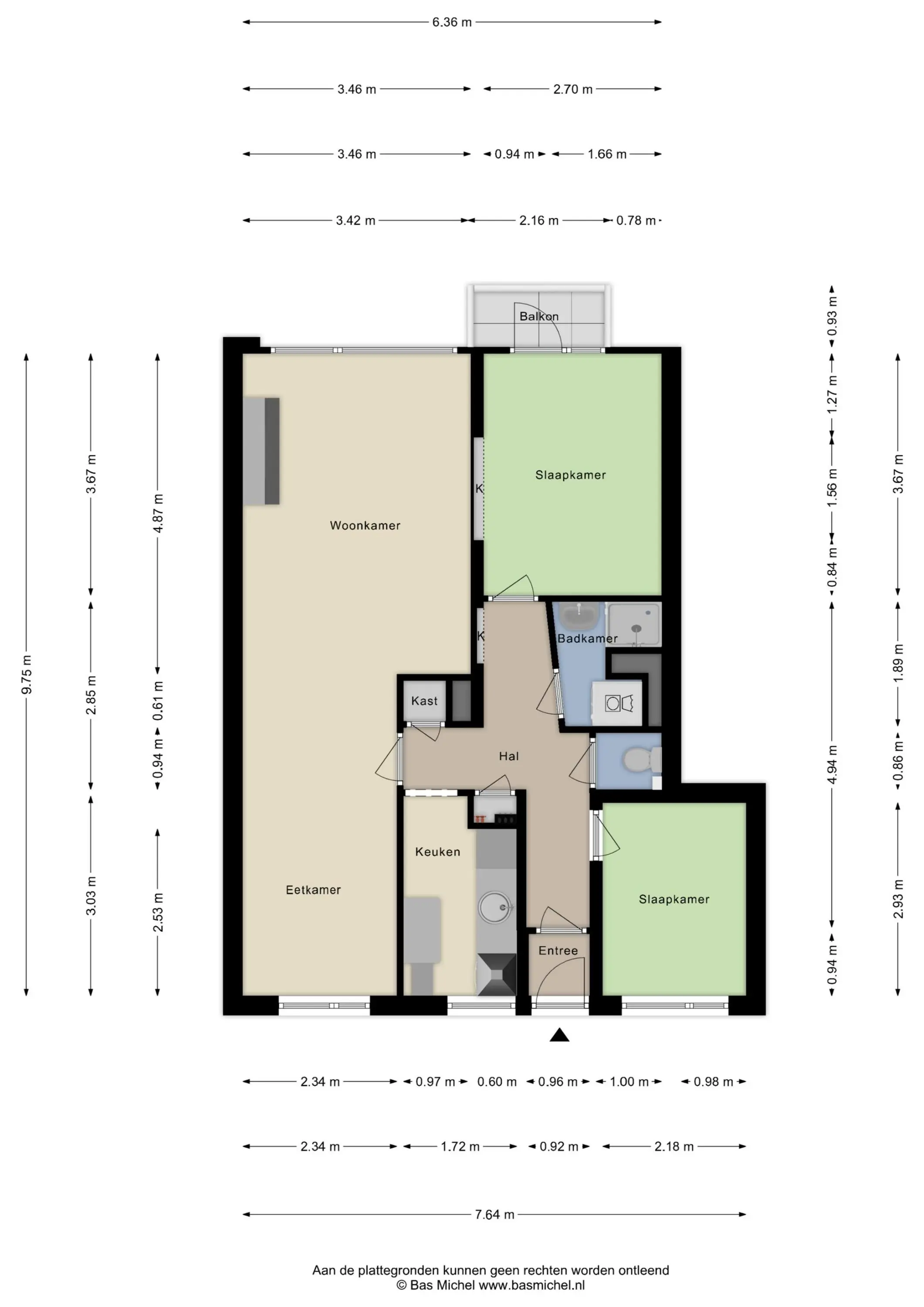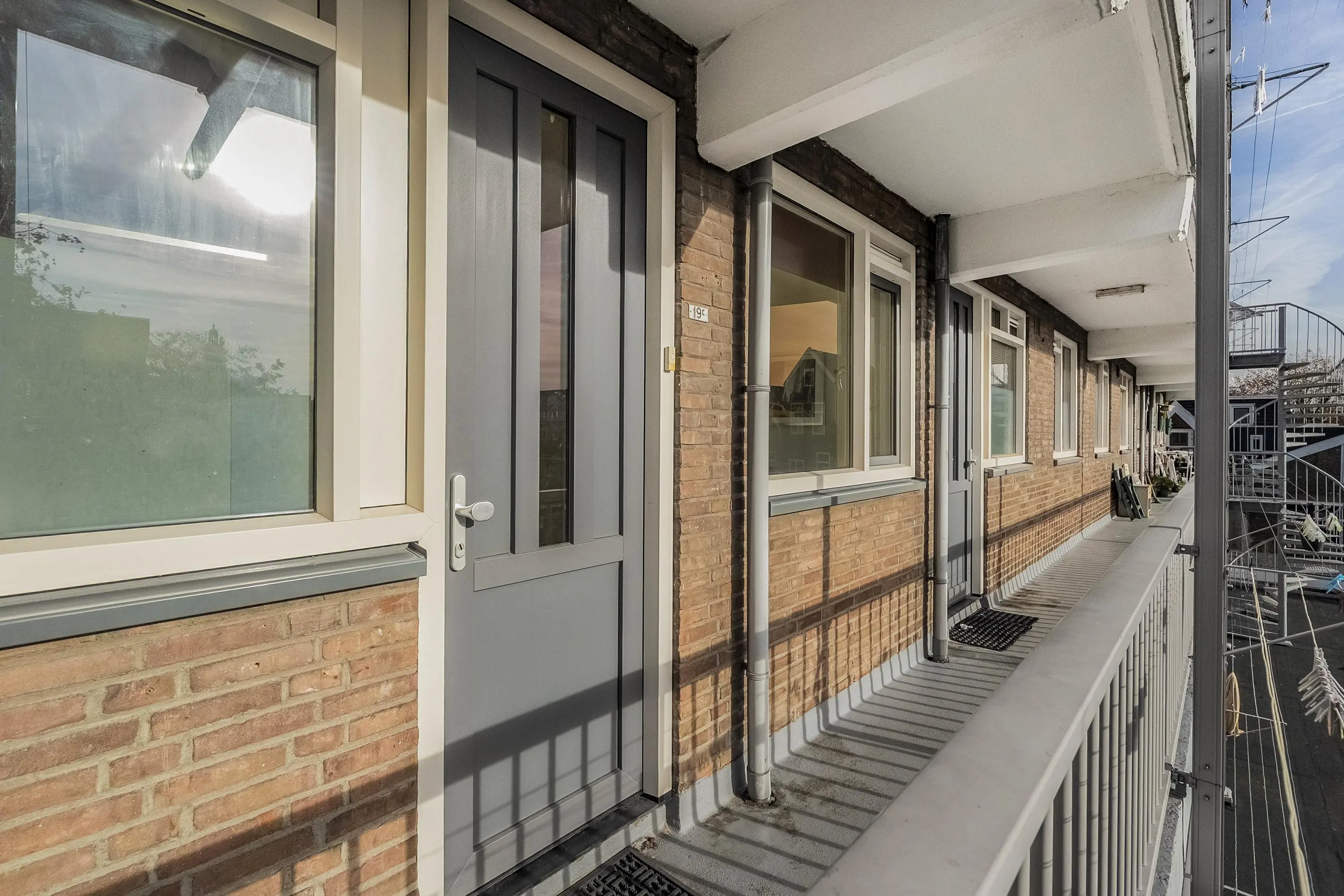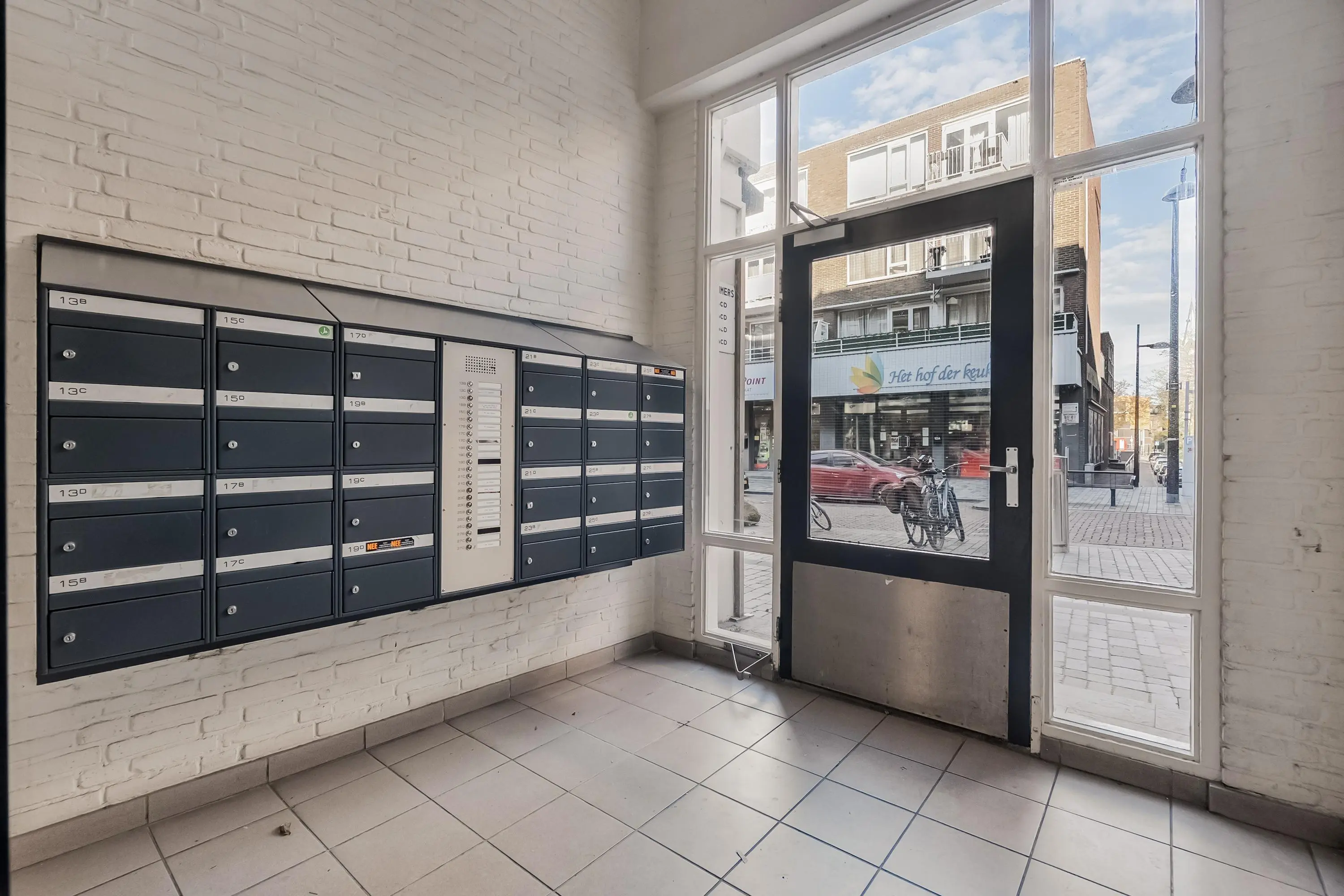 Via de overdekte galerij is het appartement te betreden. Entree, tochtportaal, hal met meterkast, een extra voorraadkast en toegang tot alle vertrekken, toiletruimte voorzien van een duoblok toilet. De toiletruimte is gedeeltelijk betegeld in een neutrale kleurstelling en is afgewerkt met een spotje.