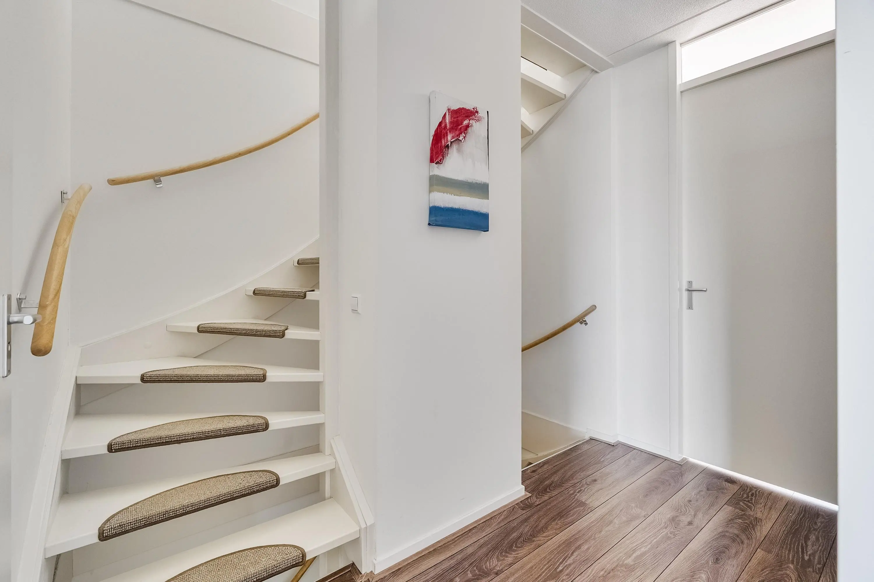 Ruime overloop met toegang tot alle vertrekken en trap naar de tweede verdieping.