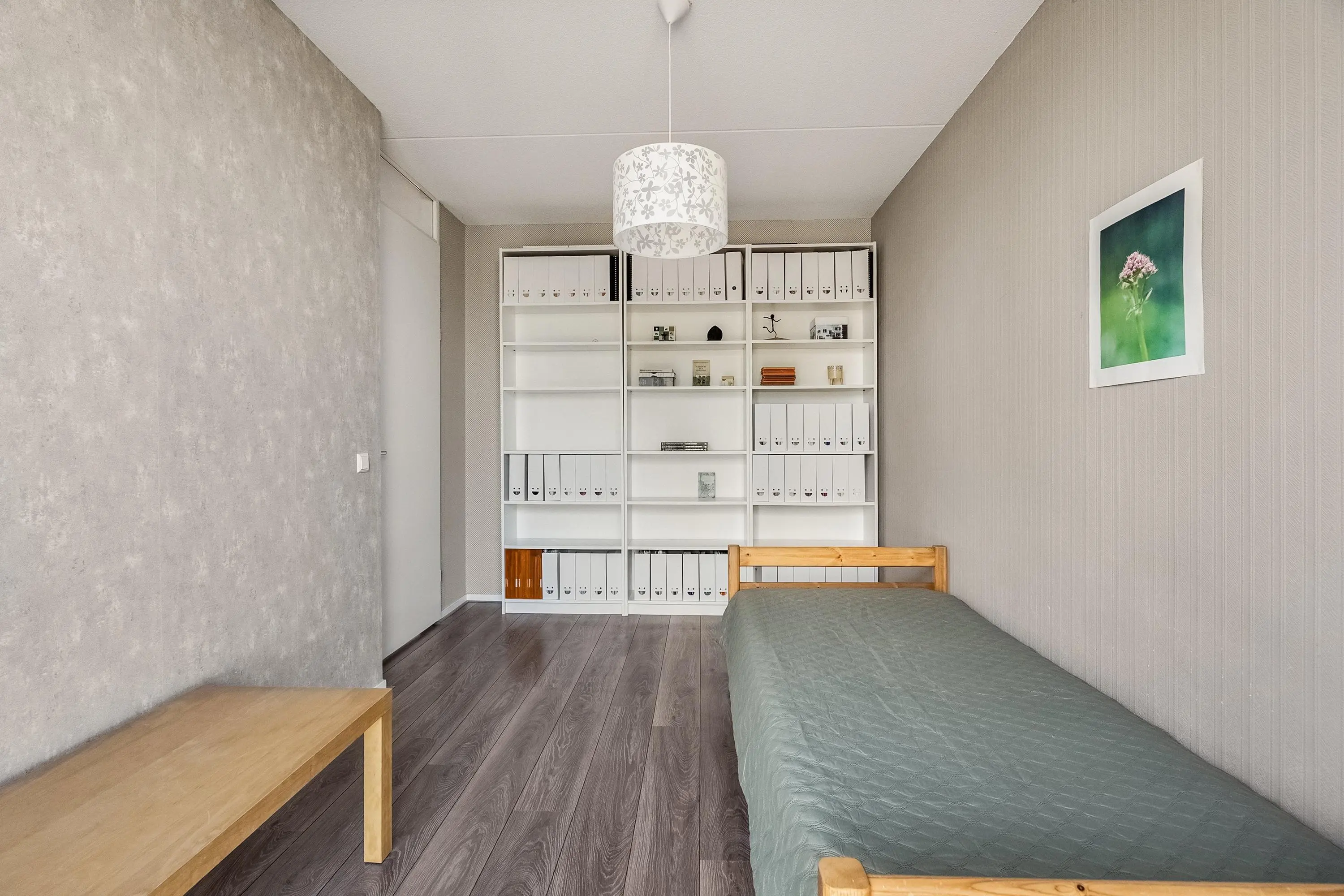 De slaapkamers op deze verdieping zijn voorzien van laminaatvloer en behang.