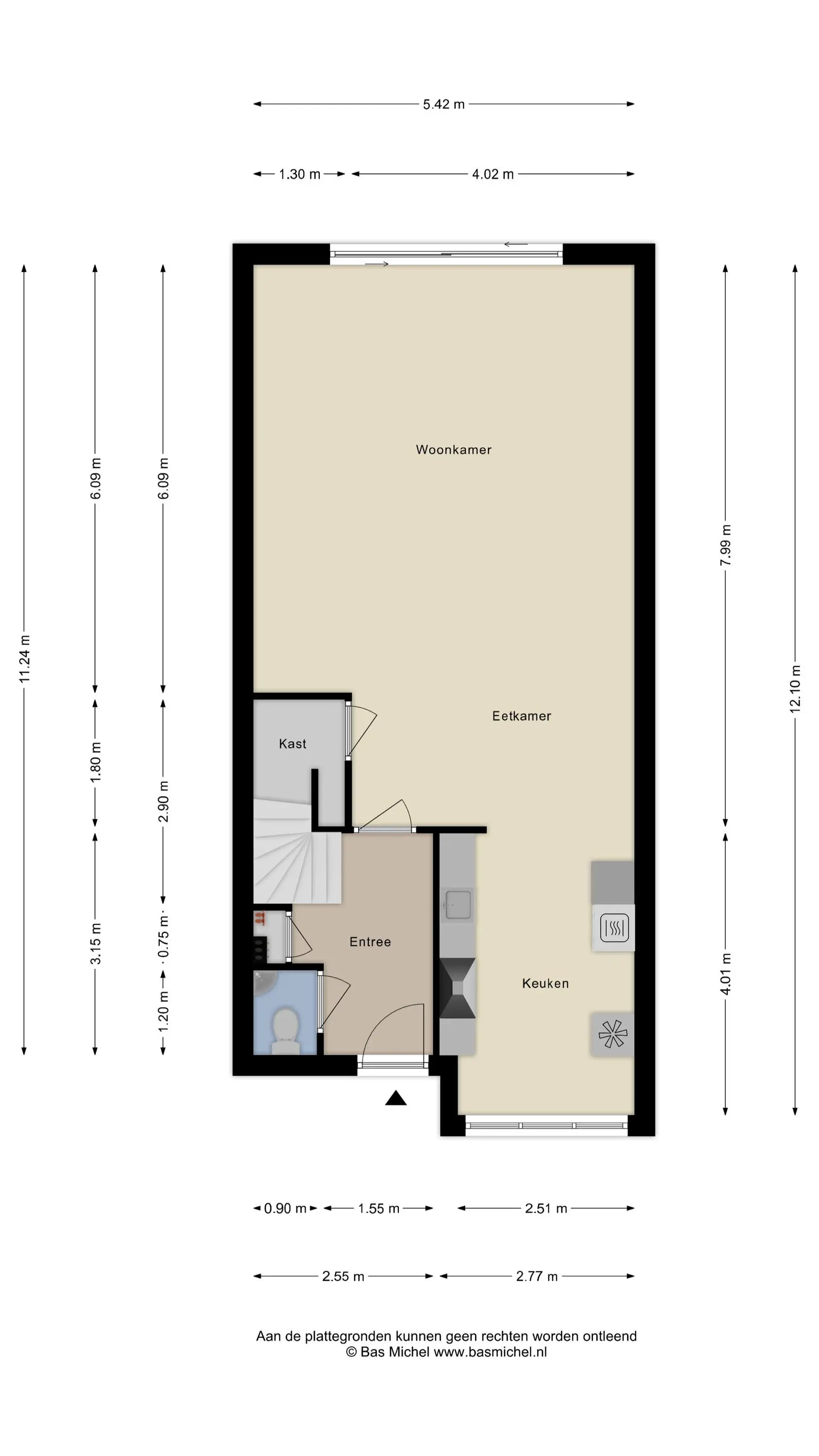 - De woning is gelegen op een perceel van 165 m2 eigen grond;