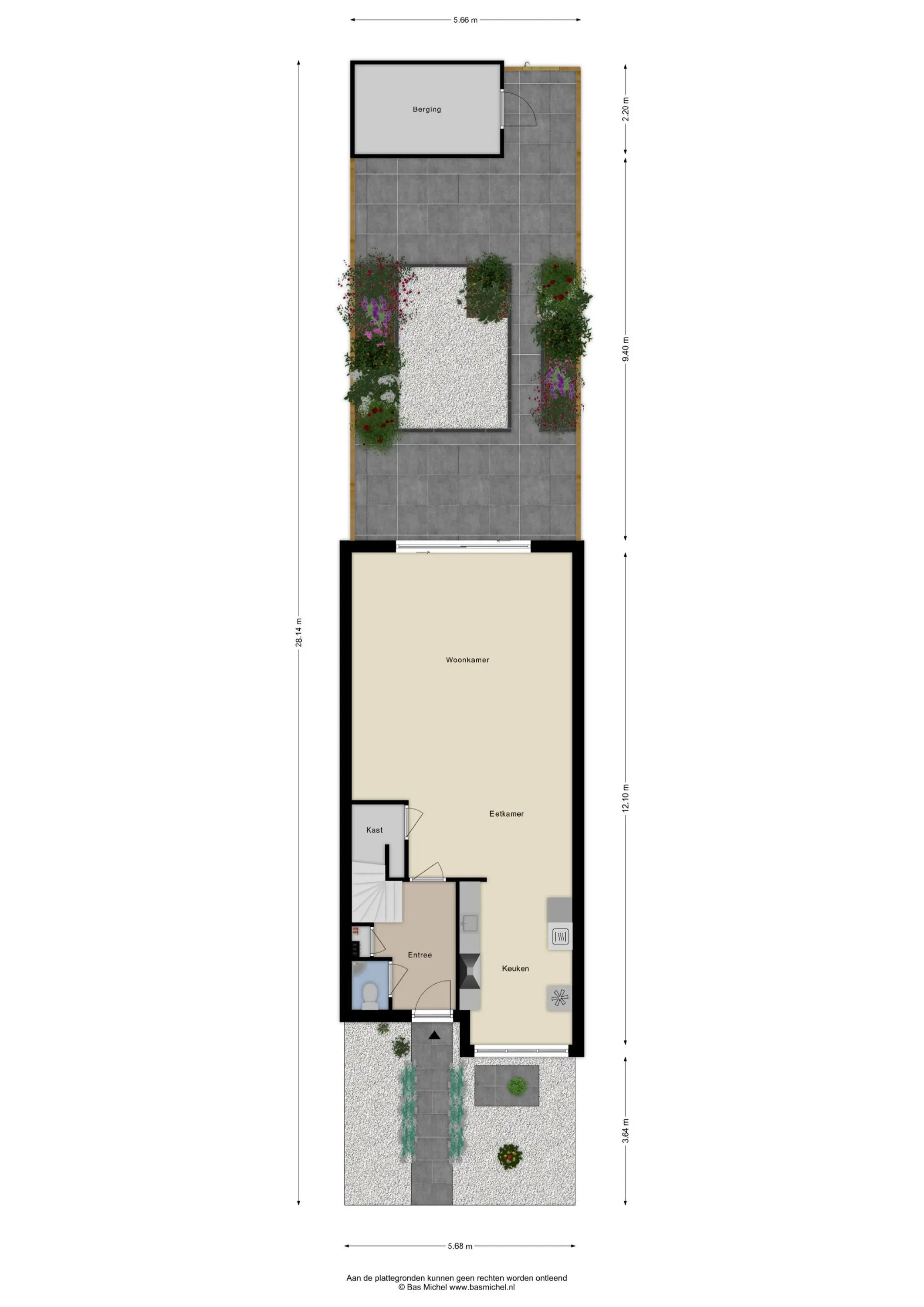 - Diepe achtertuin gelegen op het oosten;