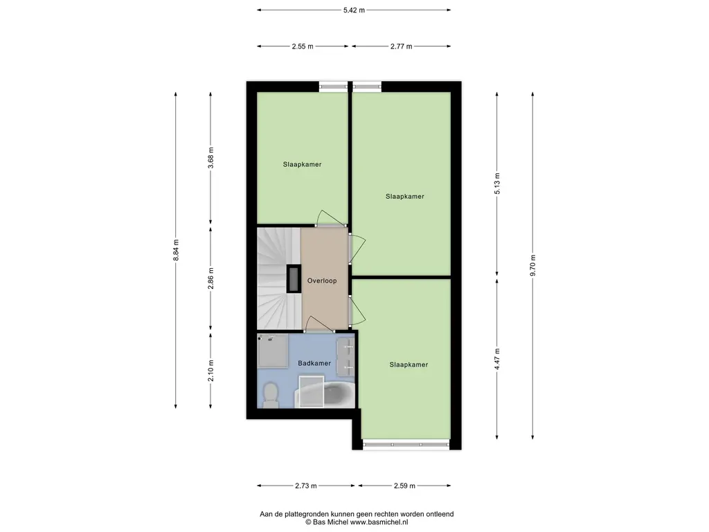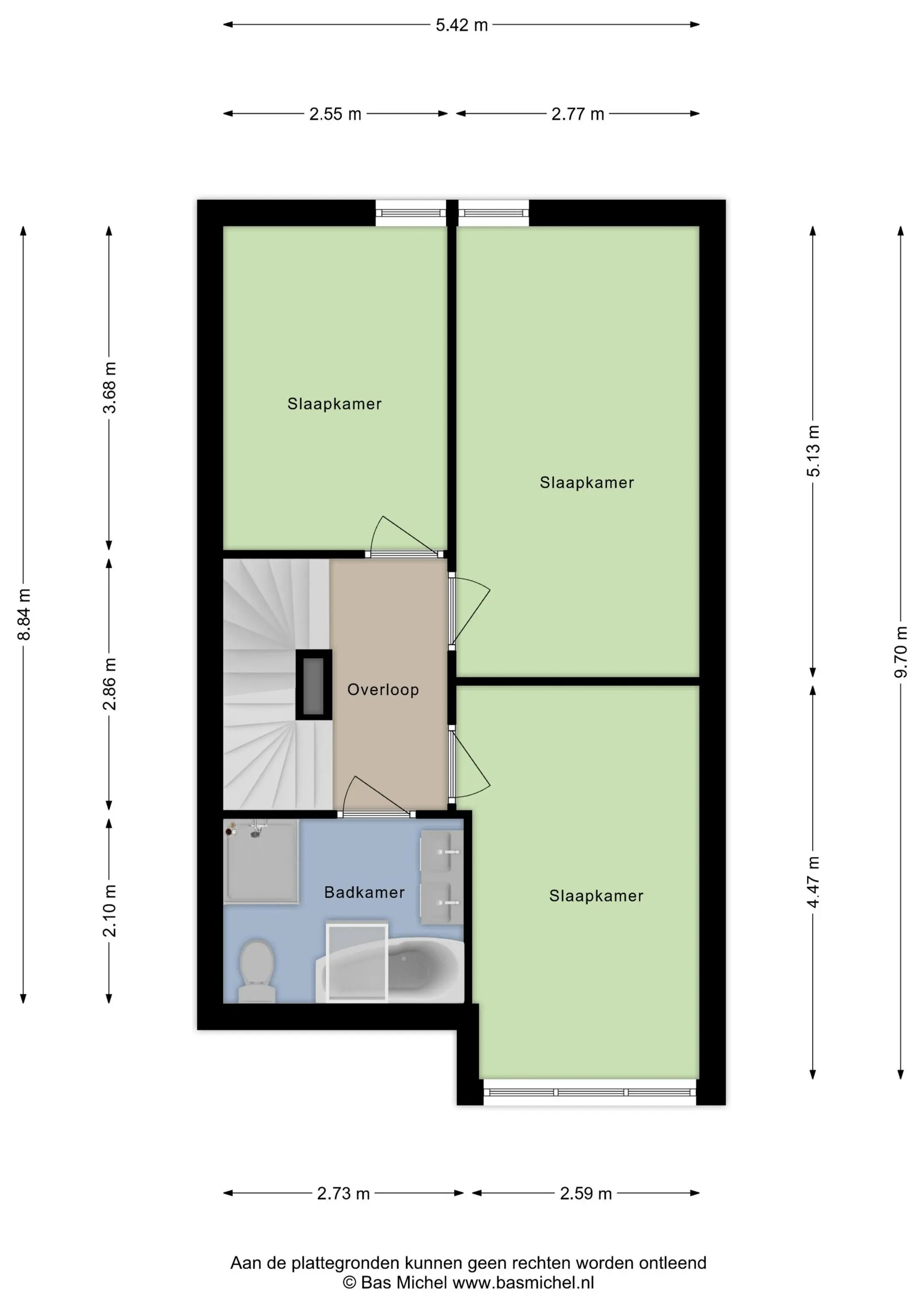 Slaapkamer 3 (ca. 9 m2) is gelegen aan de achterzijde van de woning.